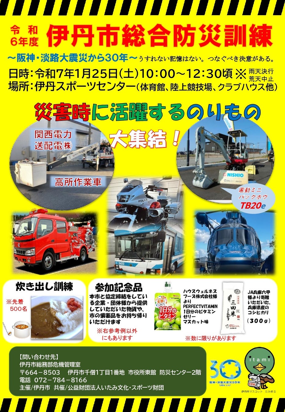 西尾レントオールは伊丹市総合防災訓練に出展します~阪神・淡路大震災から30年~