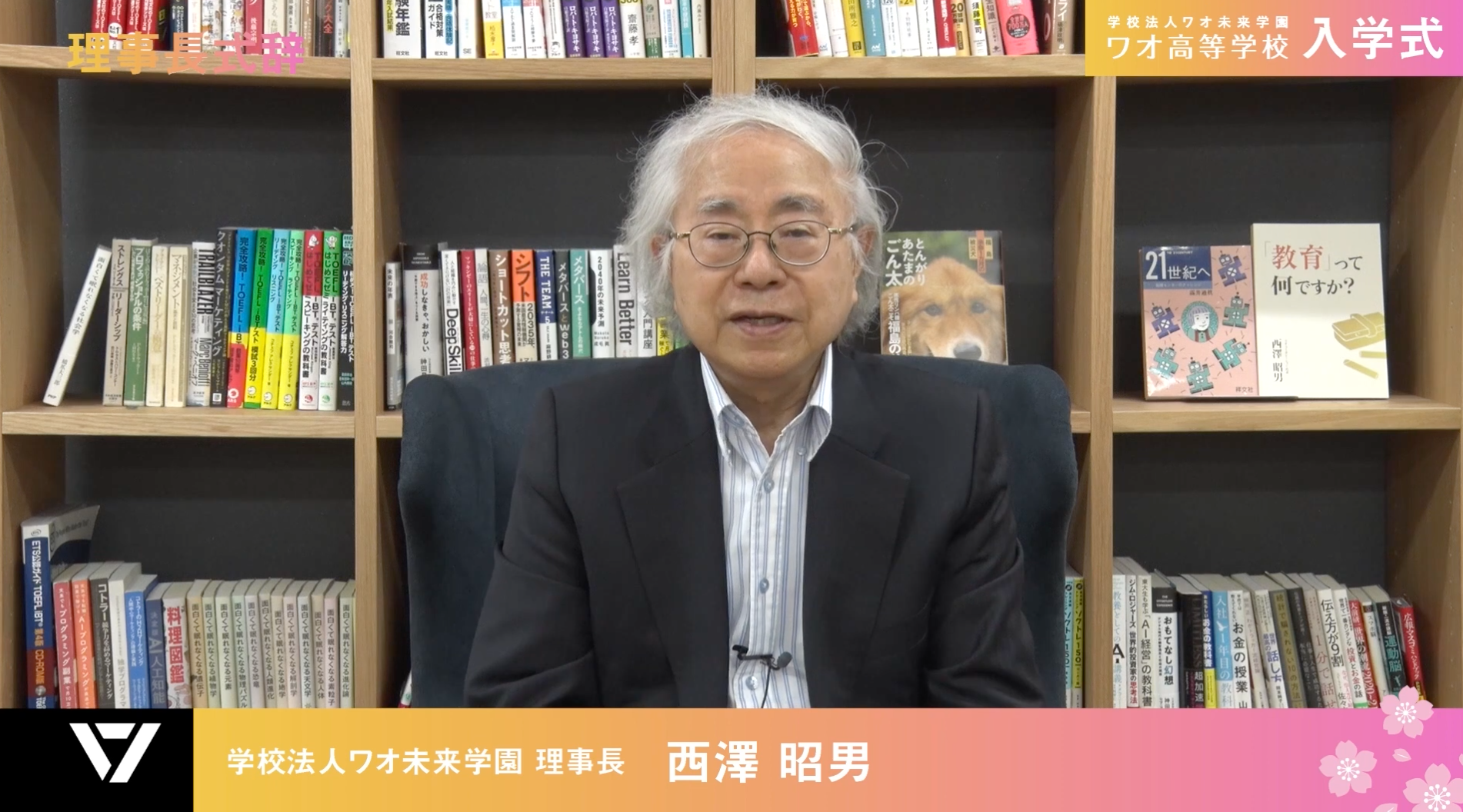 45年以上に渡り教育に貢献し、ワオ未来学園の創始者である理事長の西澤昭男より、新入生にお祝いのメッセージを届けました。