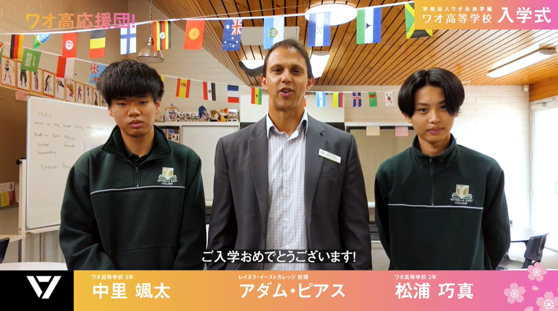 ワオ高校を支えてくれている大人応援団から、素晴らしい、お祝いのメッセージビデオをいただきました。グローバル社会での活躍を大きく期待されていました。(敬称略)