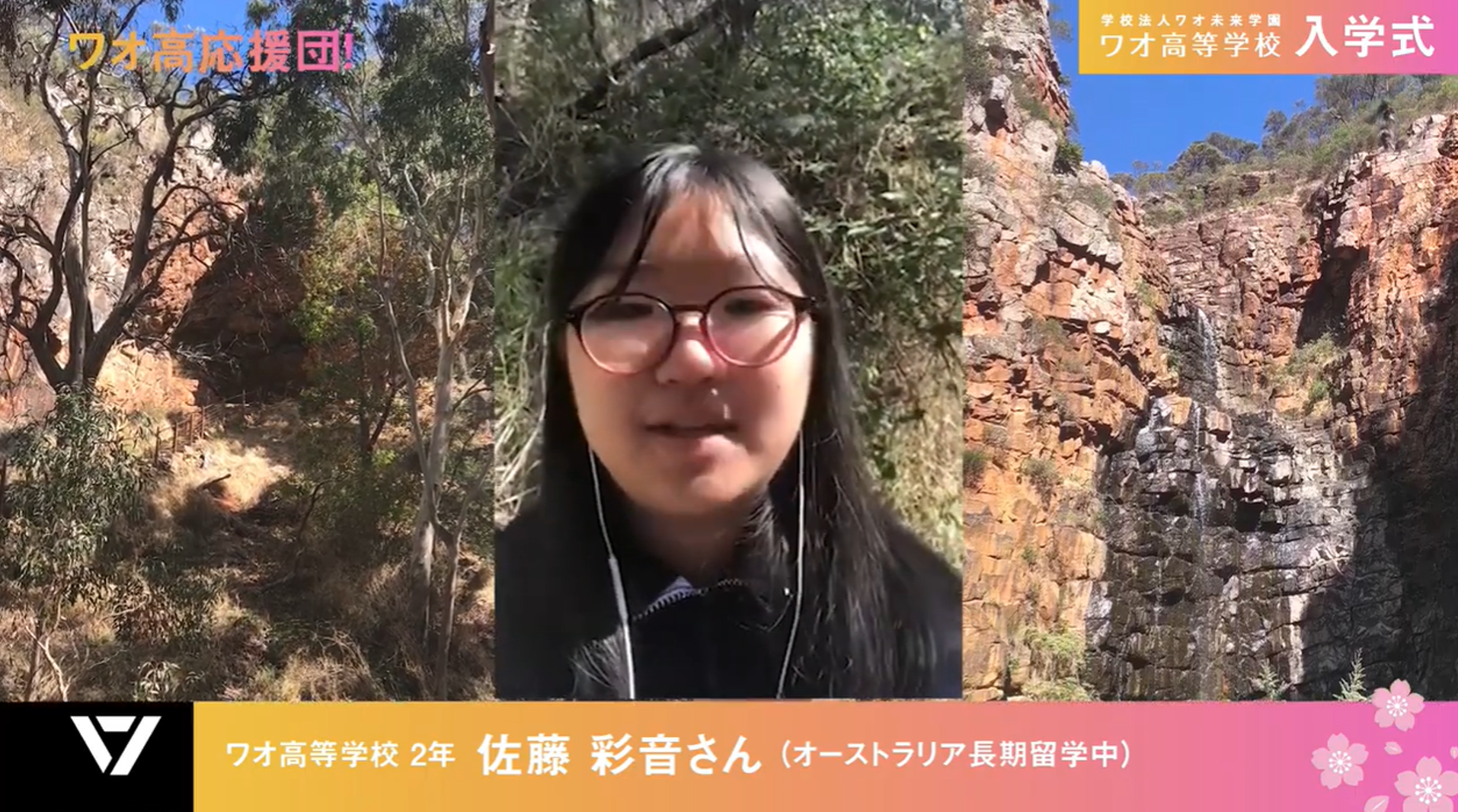 また、現在、南オーストラリアに長期留学中の先輩たちから、現地の自然や学校内で撮影した、ライブ感あふれる、応援メッセージが届き、新一年生を歓迎する温かなモードに包まれました。