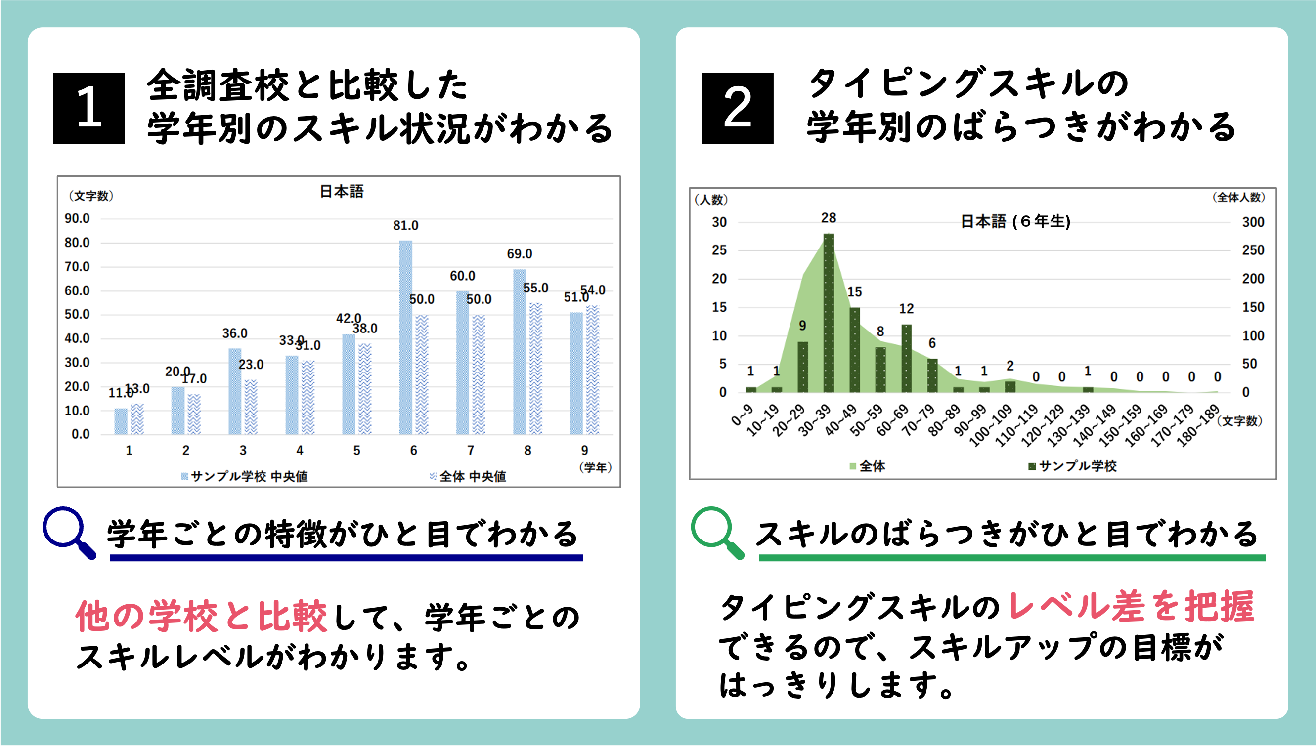 第4回からの参加も可能で、過去に参加されている自治体・小中学校においては、前回調査結果との比較レポートからタイピングスキルの推移もご確認いただけます。