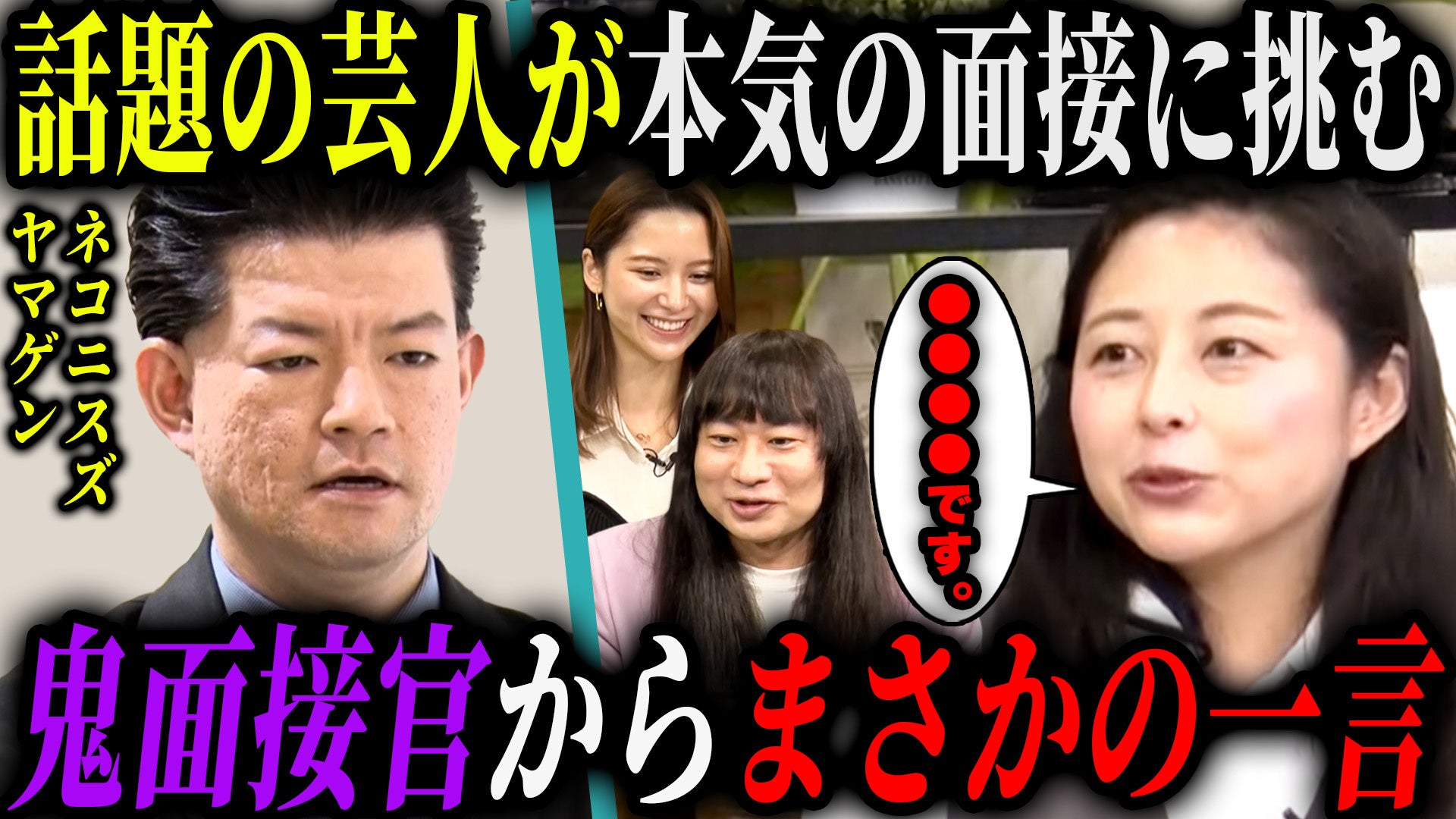 ネコニスズ舘野は冒頭から「捕まり立ちできました」と赤ちゃん設定を徹底し、「一番かわいくなりたいから赤ちゃんになった」と強気で押していく。途中で喉が乾いて哺乳瓶で水を飲み始めるも、「これは水じゃない、黒霧島」といったカオスな発言も飛び出し、面接は次第に迷走モードに。面接官役のトイアンナはその異様なキャラクターをあくまで“受け止め”、通常の就活と同様、冷静かつ論理的に質問を連投。「赤ちゃんとしてのキャリアはいつからですか?」「ご自身で考えて選んだキャラクターですか?」など、相手の言葉を丁寧に引き出し、深掘りを試みます。