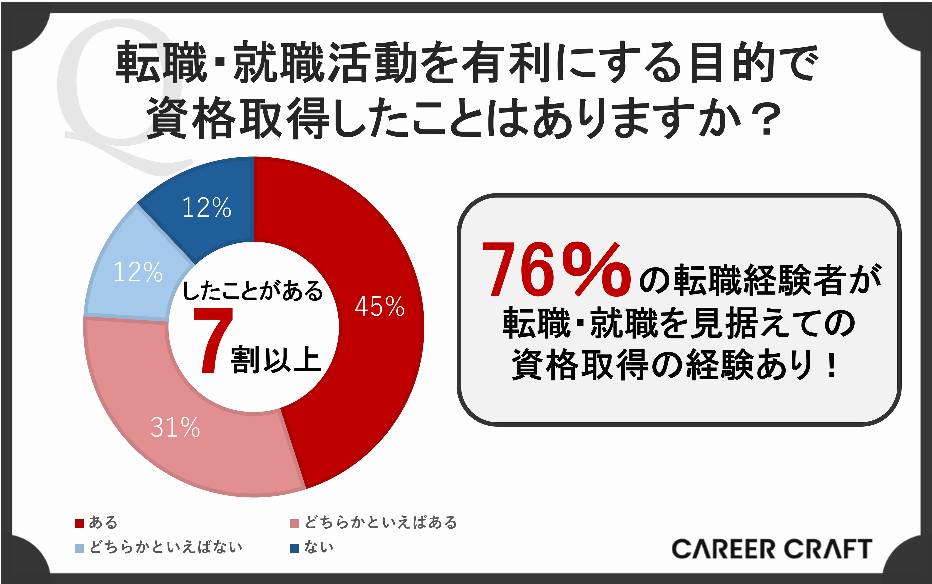 上記のように、転職・就職活動のために資格を取得する人は過半数を占めています。