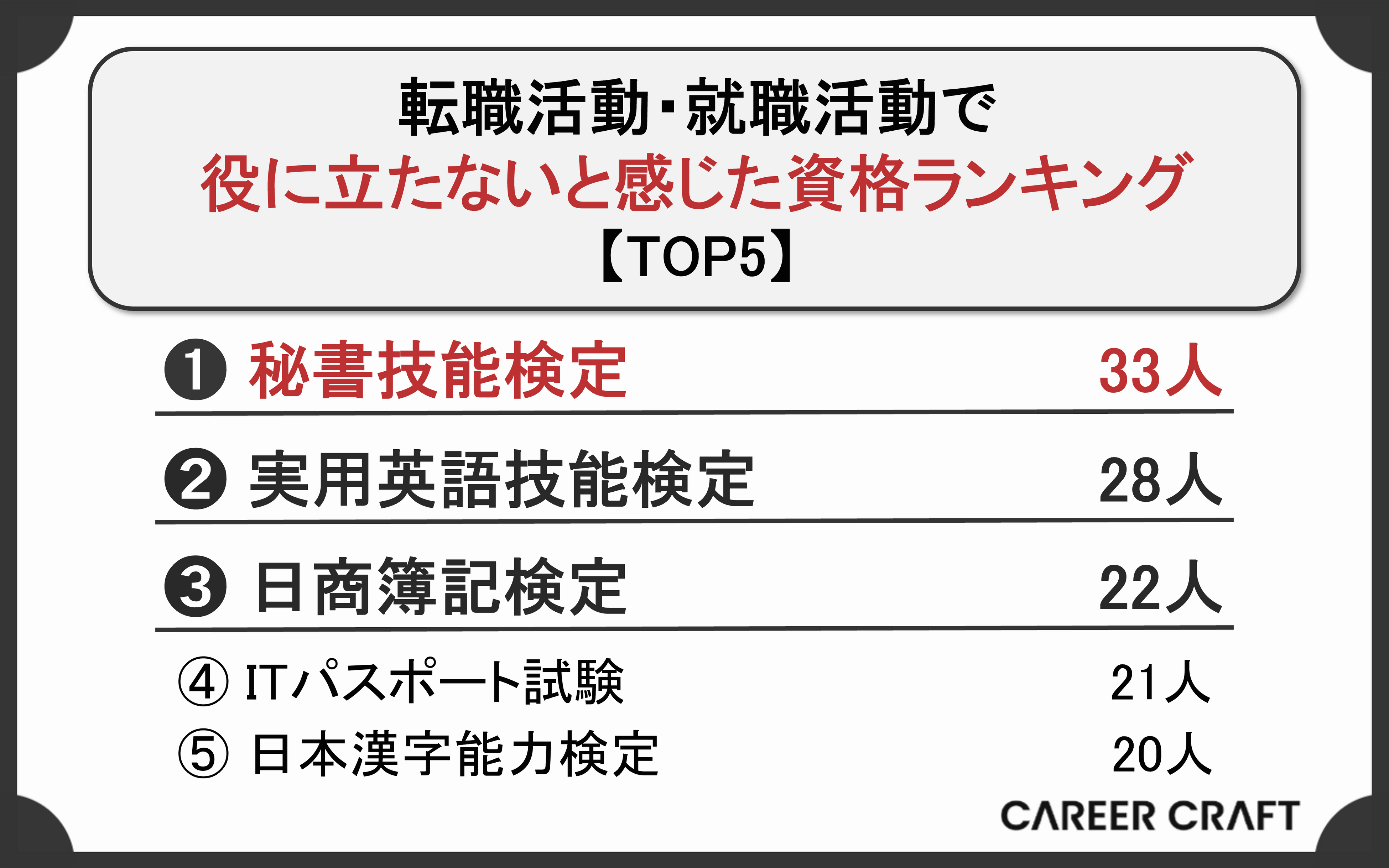 『転職活動・就職活動で役に立たないと感じた資格ランキング』