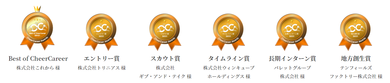 CheerCareerAwardsでは、採用活動において、魅力的かつ模範的活動をされている企業様を広く世の中に働くにワクワクを広めるべく表彰し、求職者に公式におすすめ企業として推奨させていただいております。当アワードを通じて各社様のお取り組みが認知され、より良い採用活動に繋がるキッカケとなれば幸いです。