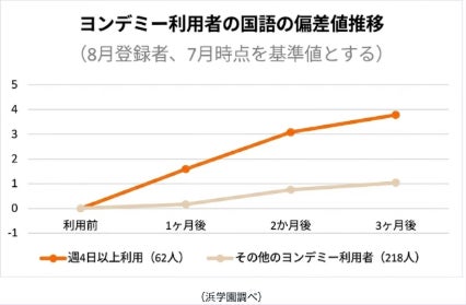 「ヨンデミー」で読書を「週4日以上」している層は、国語の偏差値で平均4ポイント上がっています。(※3)