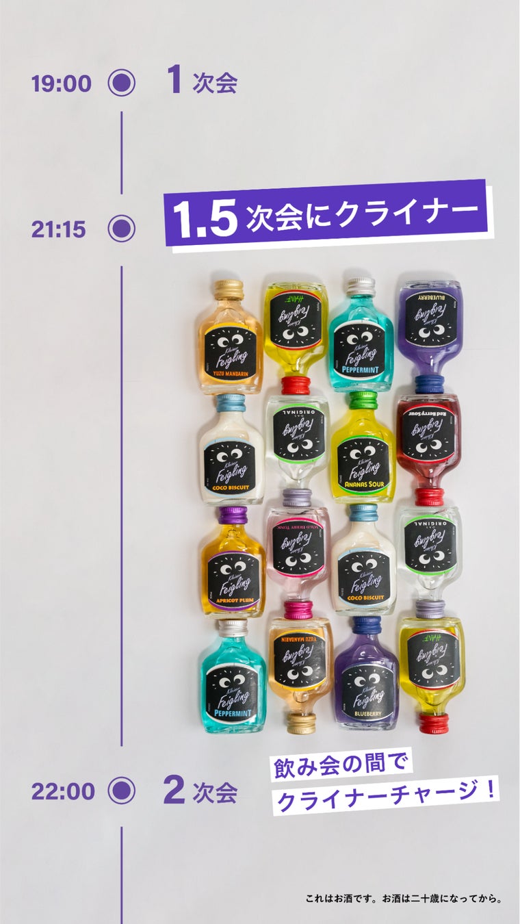 飲む前に気分を上げる「0.5」次会や、2次会までのあいだに上がった気分をキープする「1.5」次会にぴったりなアイテムとして、新しいお酒のシーンを創造しています。