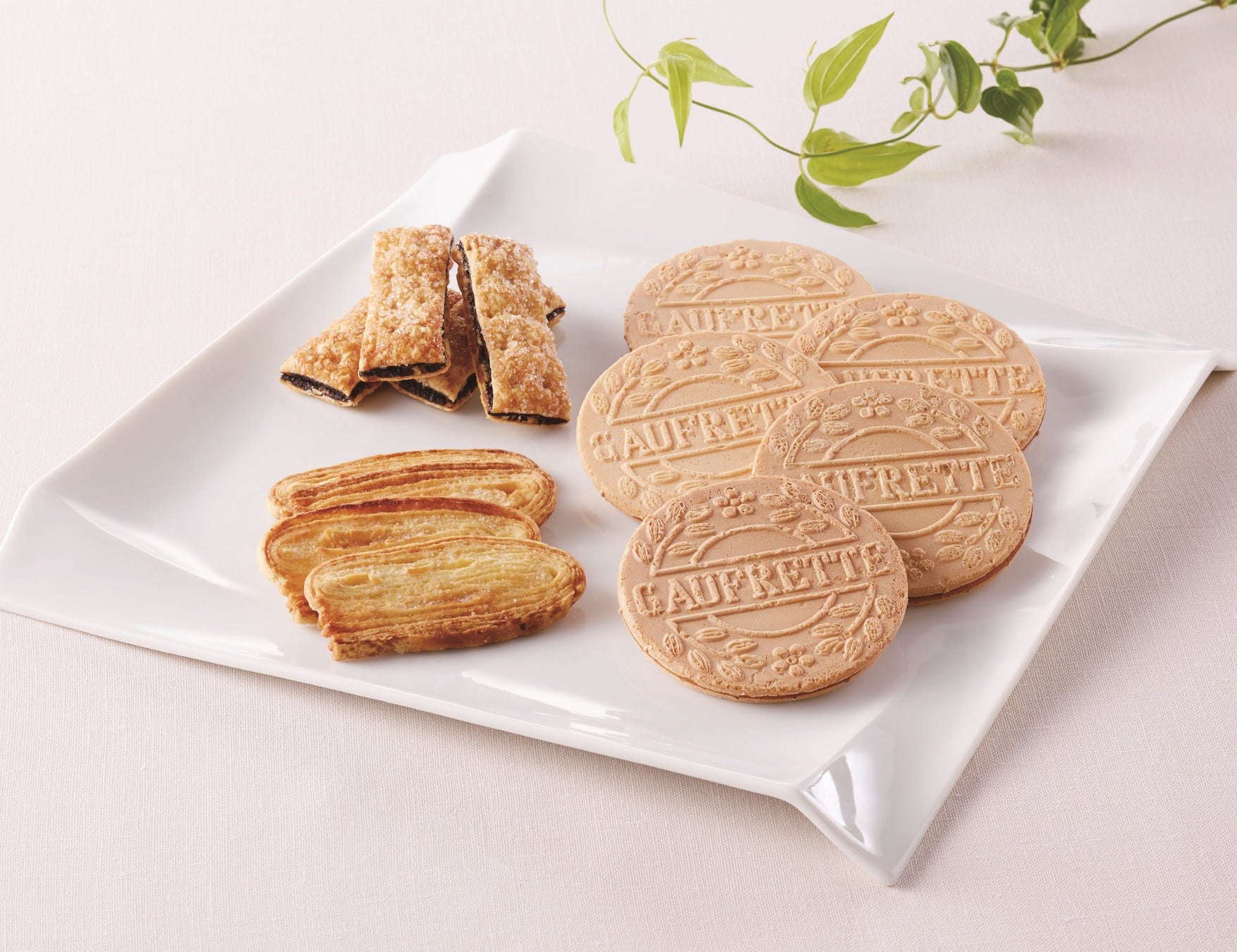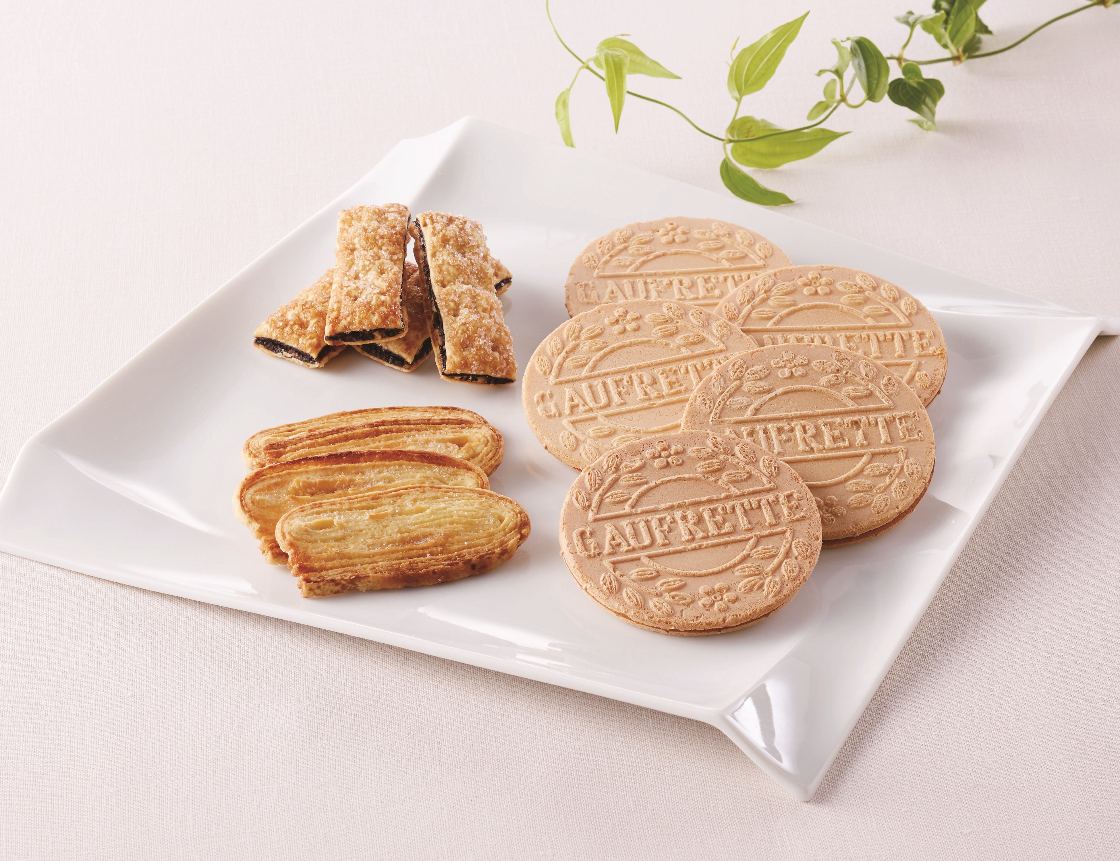 ●内 容:ゴーフレット(チョコ×5・バニラ×10)、アーモンドパイ・ショコラスティックパイ 各4