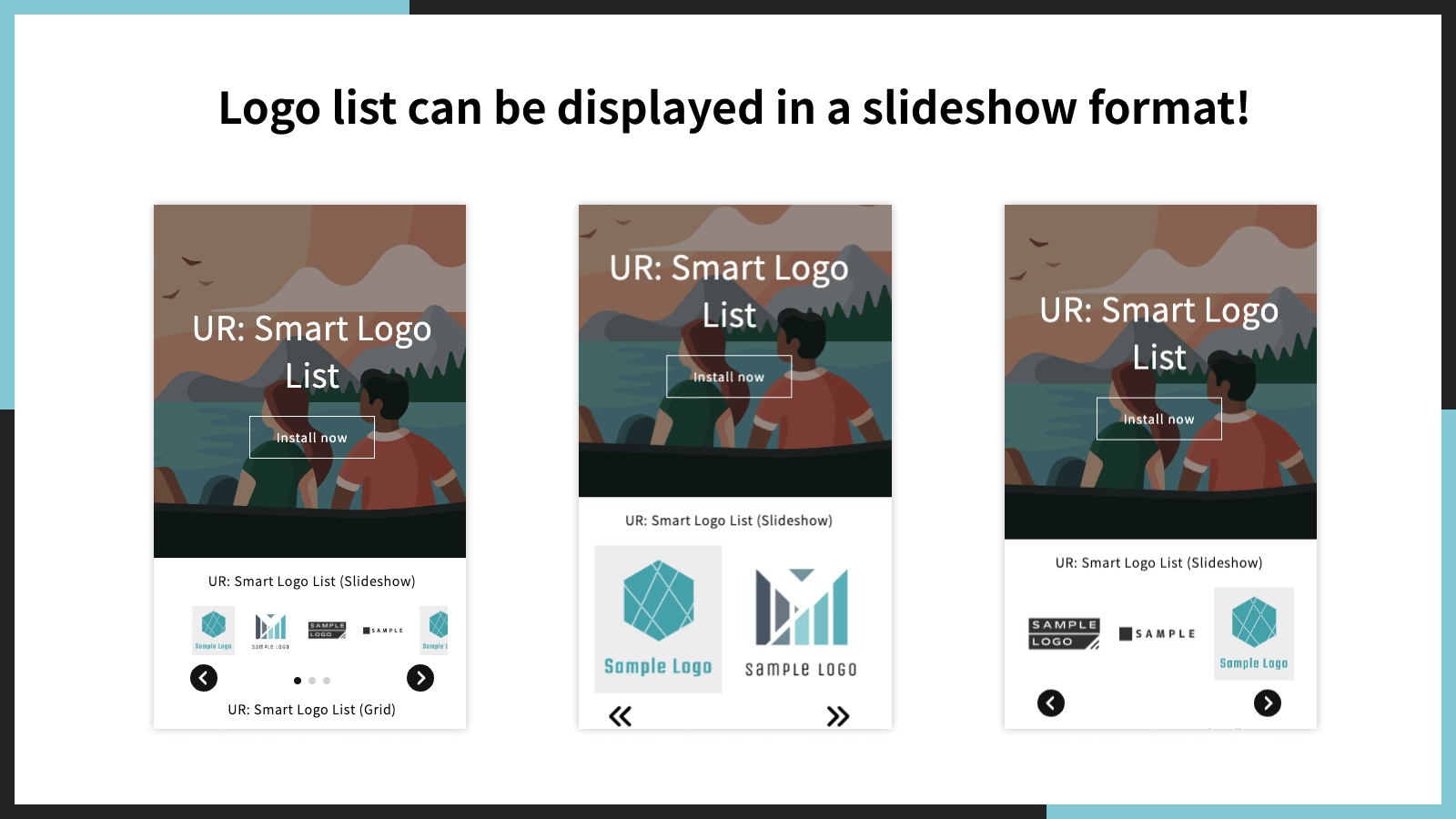 「UR: Smart Logo List」は、スライドショー形式でロゴリストを表示できます。