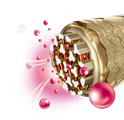 また、色もちキレイ成分(シルクPPT)*が髪の内部に染料を閉じ込め、流出を防ぐから長く髪色を楽しめます。