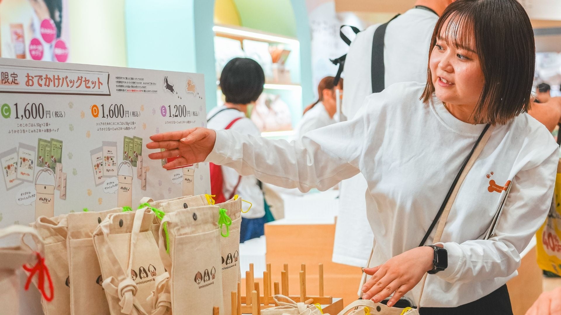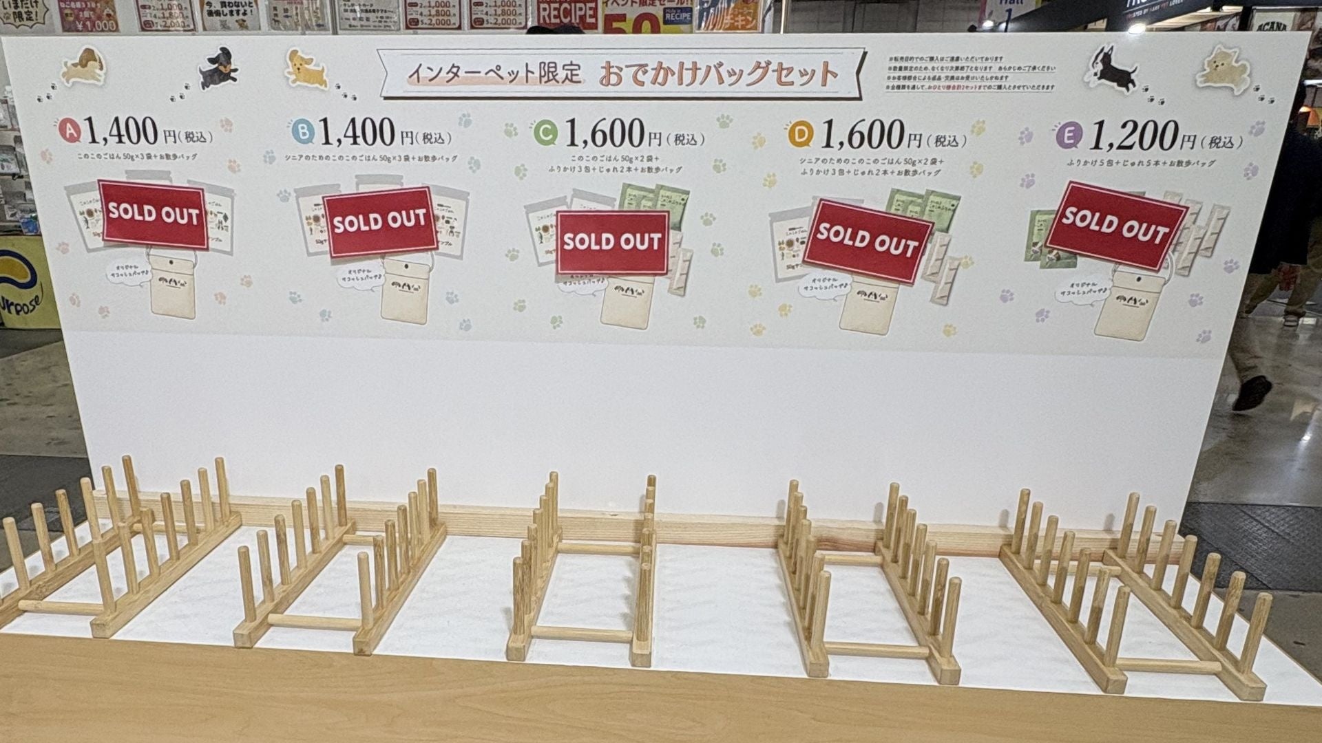 人気商品のサンプルとオリジナルデザインのサコッシュを組み合わせた「インターペット限定おでかけバッグセット」として販売し、多くのお客様にお立ち寄りいただき、会期中に完売となりました。