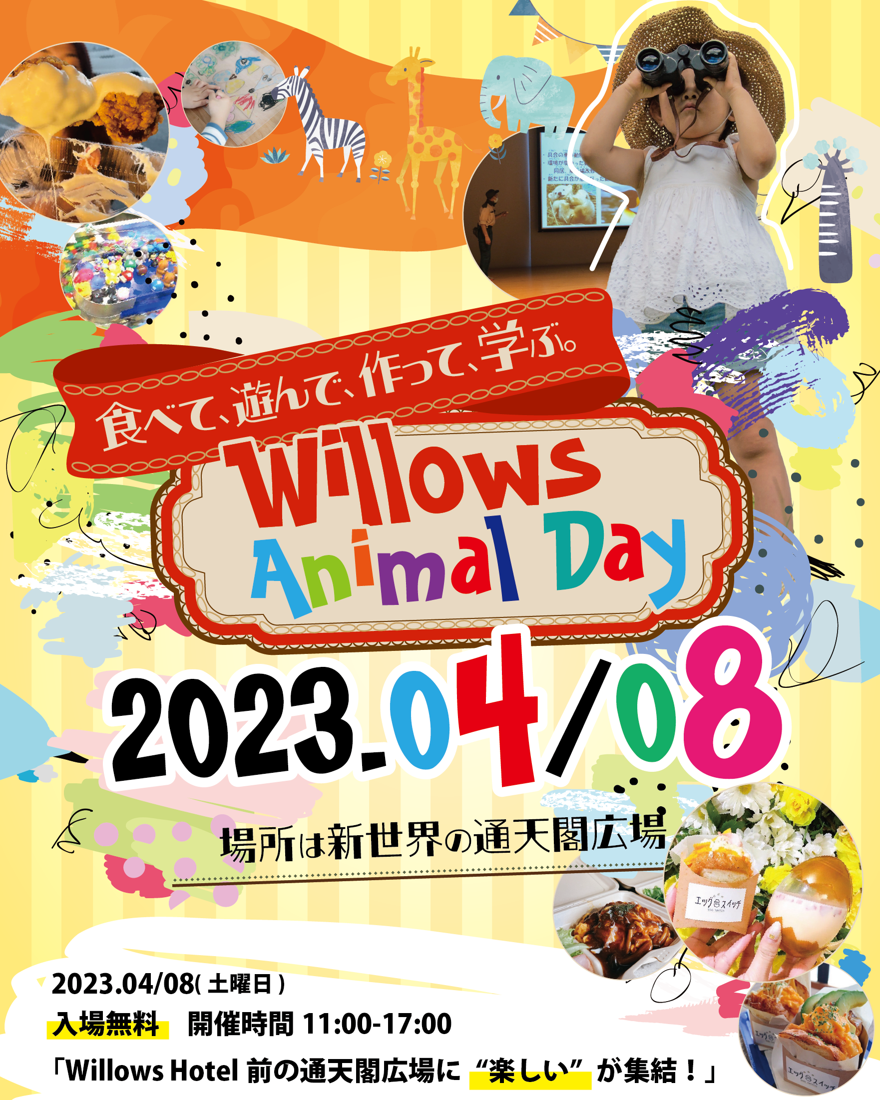 天王寺動物園に隣接するWillows Hotel 大阪新今宮は、同動物園に協賛いただき、春休みに合わせた子供向けイベントをこの度開催します。動物をテーマにしたさまざまなコンテンツを楽しみながら、食べて、遊んで、つくって、学ぶことのできる場を1日限定で設けます。