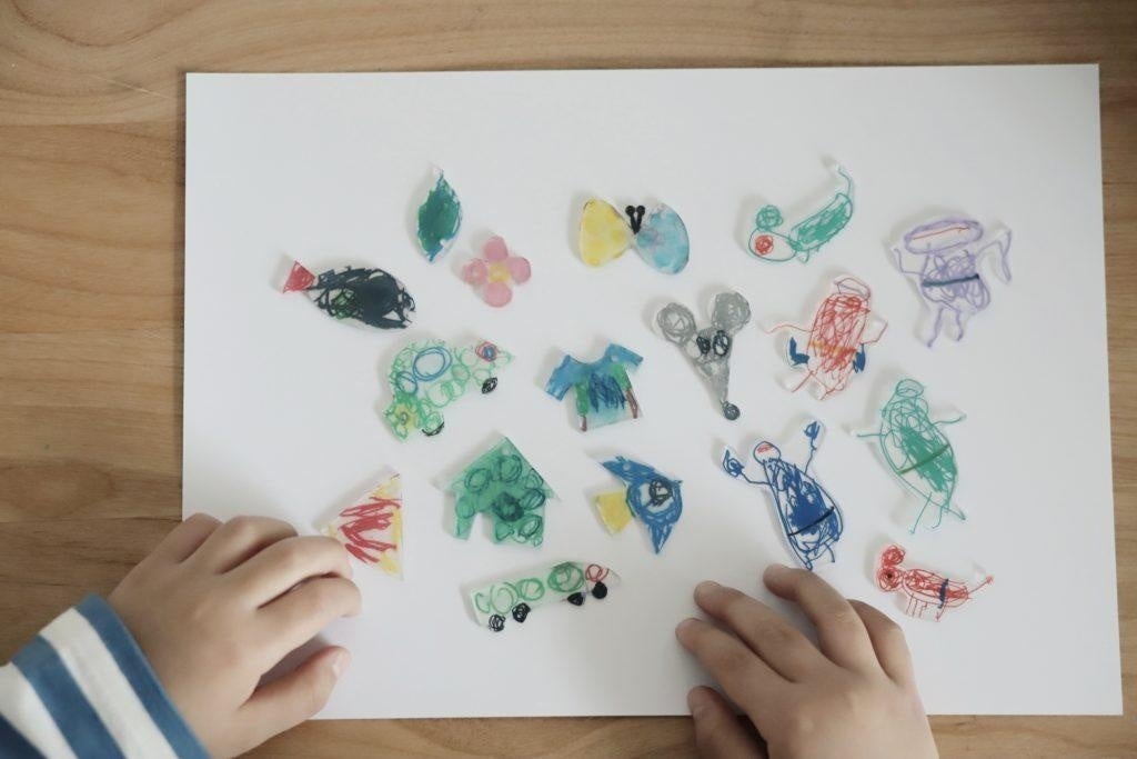 動物を模したプラスチックの板に、自由に色塗りをしてストラップを作成。