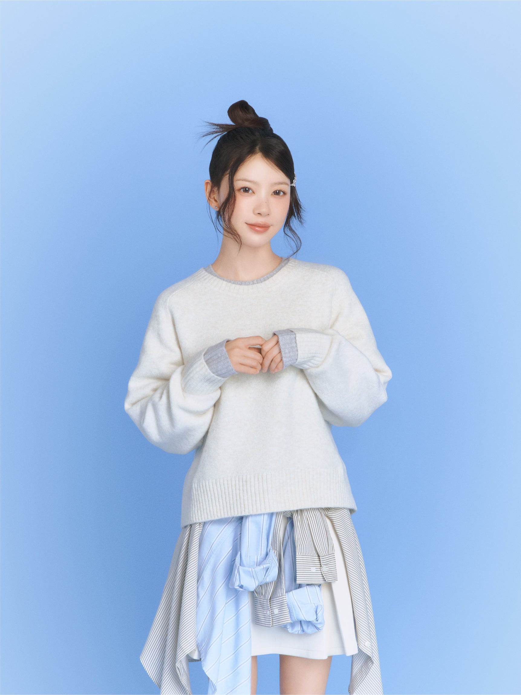 (MOKAさん) スフレヤーンクルーネックセーター ¥3,990 (01 オフホワイト)