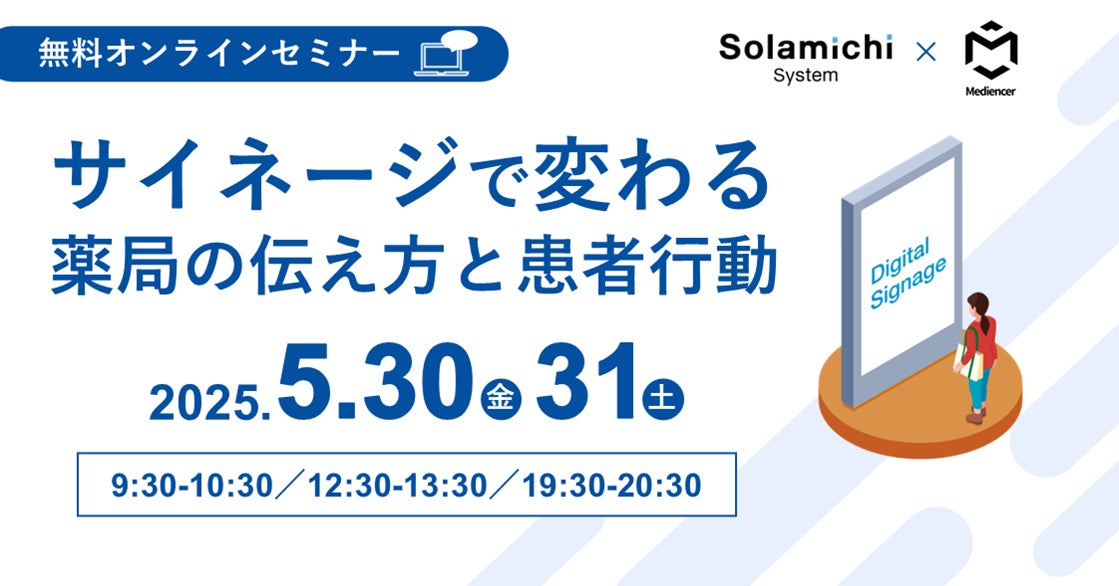 【ソラミチシステム:無料オンラインセミナー】5月30日、31日に開催!「サイネージで変わる薬局の伝え方と患者行動 」
