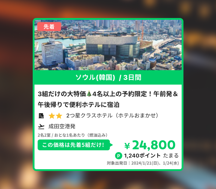③ 先着250名限定!24,800円〜大特価ツアー販売