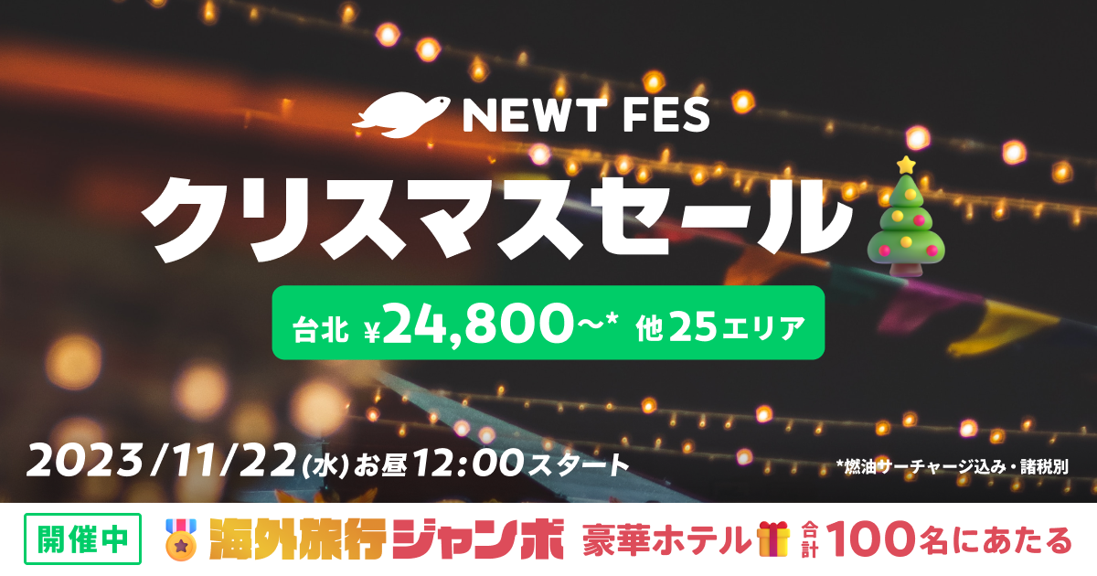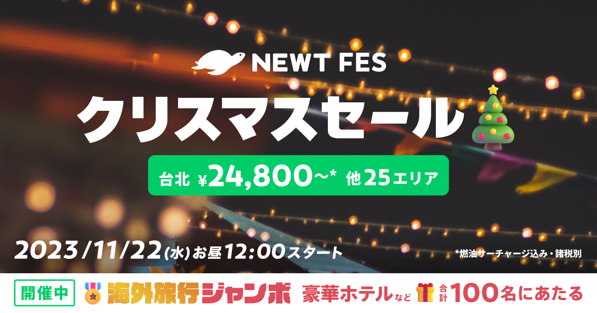 海外旅行予約アプリ『NEWT』、NEWT FES クリスマスセール開催