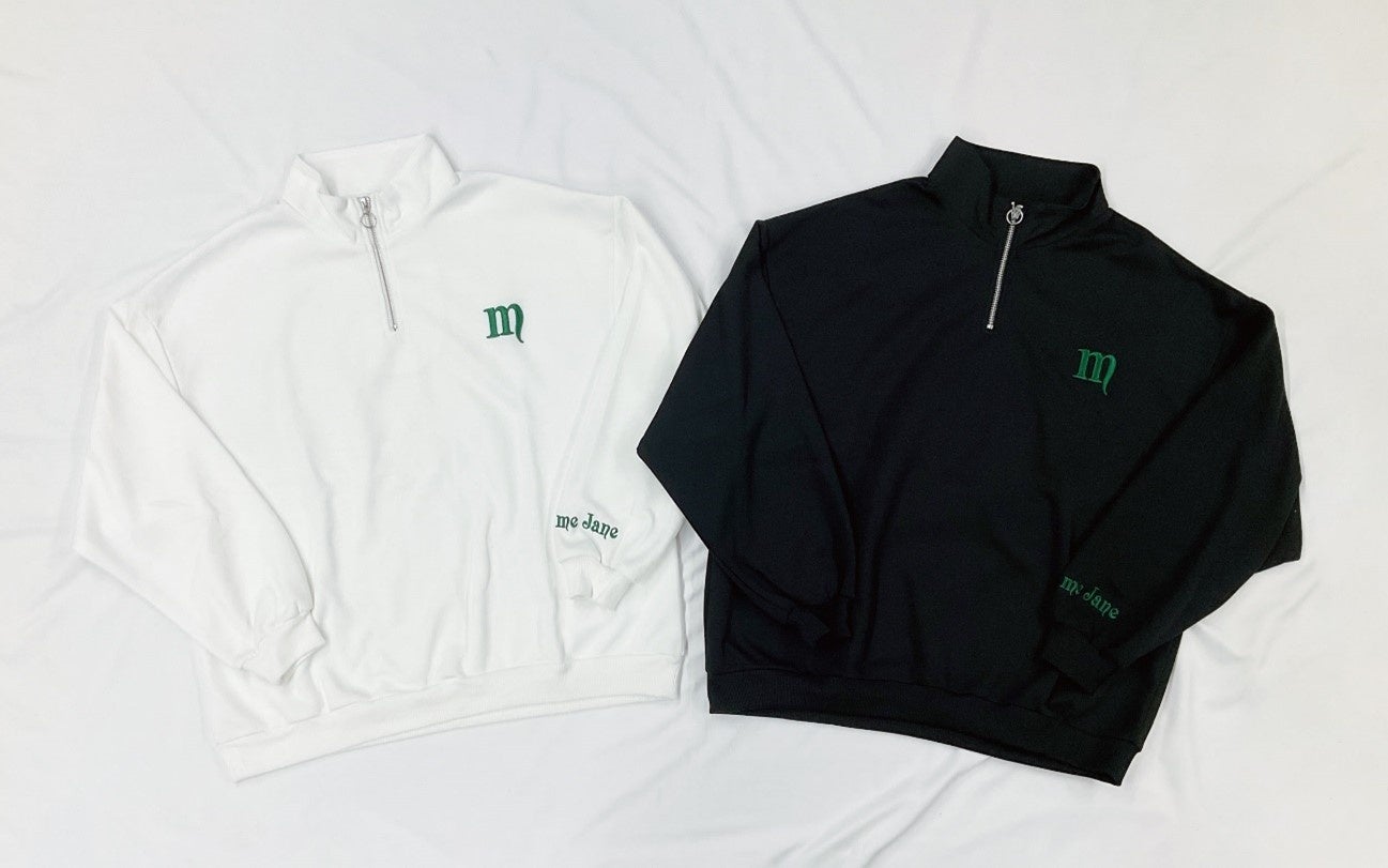 大人気アイテムハーフジップに「me Jane」のデザインを落とし込んだアイテム。フロント胸元にワンポイントデザイン、袖にもさりげなく刺しゅうロゴが施されています。オーバーサイズ気味でトレンドライクなシルエットが完成します♡