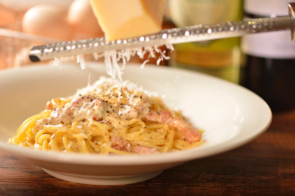 北海道十勝で作られた生クリームをつかった風味の良いクリームソースに、「下川六〇酵素卵」の濃厚玉子がよく合います。仕上げにかけるパルミジャーノチーズも華やか!
