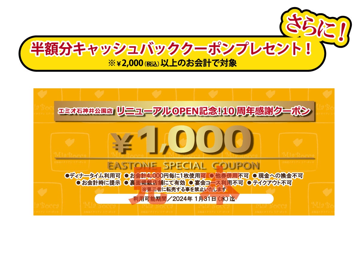 【3】2000円以上お会計の方へ、次回使える半額分相当の割引チケットをプレゼント!