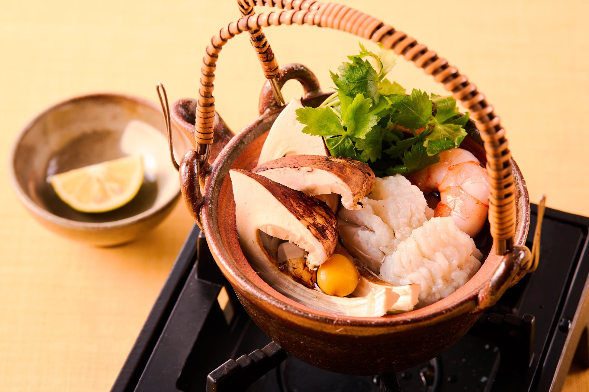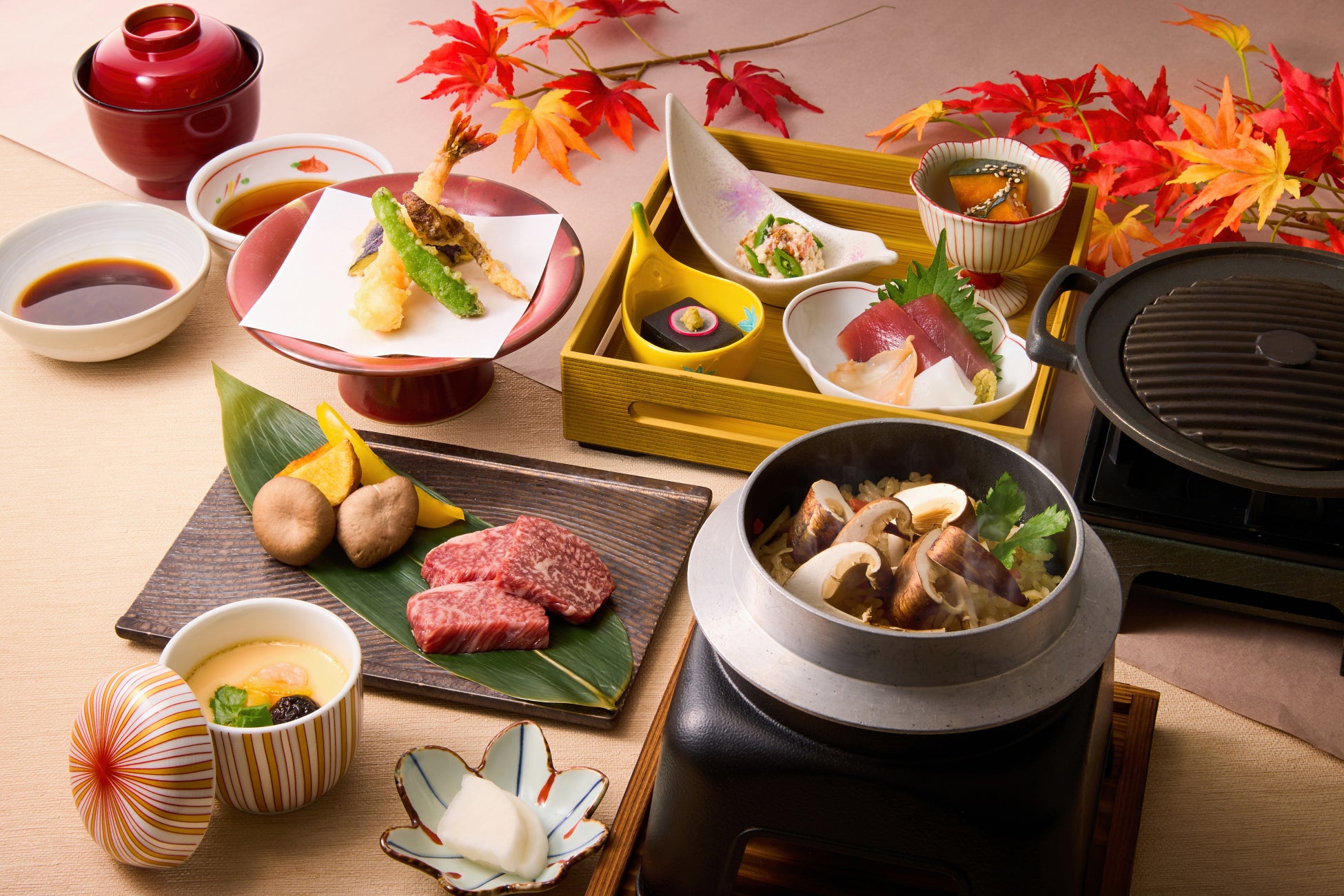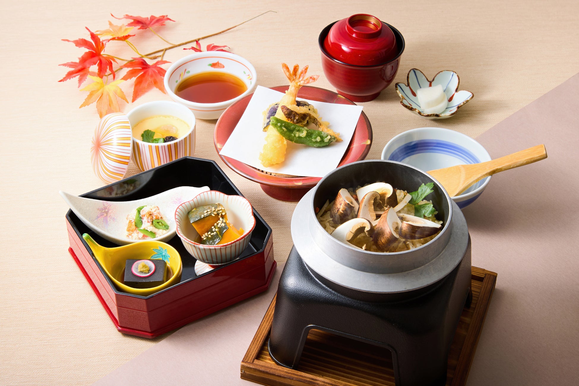 旬の松茸を天ぷらや釜めしで堪能できる特別御膳!黒毛和牛の鉄板焼きやお造りなど旬の味覚を是非ご堪能ください。