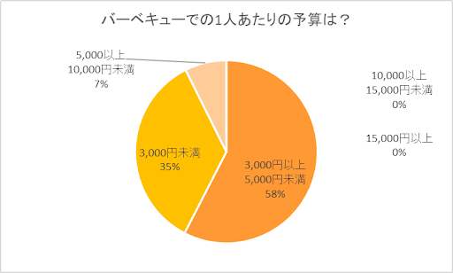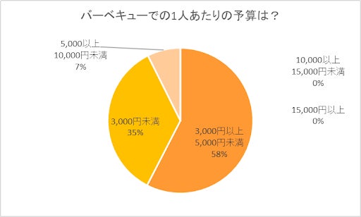 「バーベキューでの1人あたりの予算は?」という質問では、「3,000円以上5,000円未満」が半数以上を占めました。