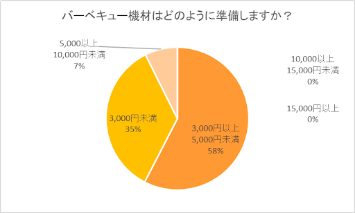 5,000円以上の回答は少数という結果から、バーベキューの予算に悩んだら1人あたり3,000〜5,000円を目安にするとよいかもしれません。