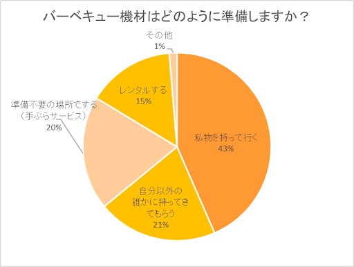 私物を持って行く人が約半数を占め、バーベキューへの意欲が伺えますね!