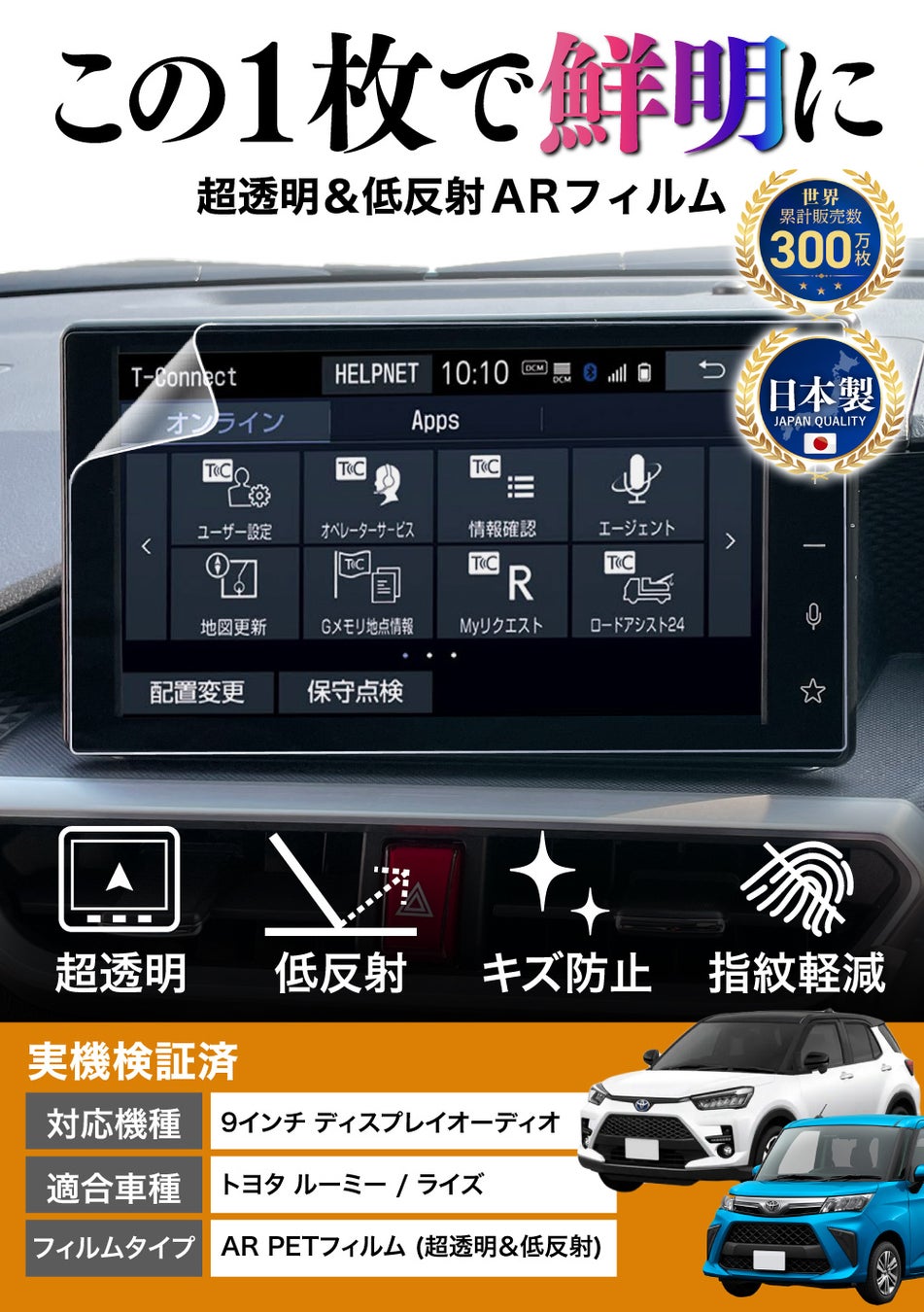 【実機検証済み・完璧フィット】 トヨタ ライズ / ルーミー 9インチ カーナビ 専用 保護フィルム が新発売! この1枚で「⾒やすく・傷防止・画面の美しさはそのまま」