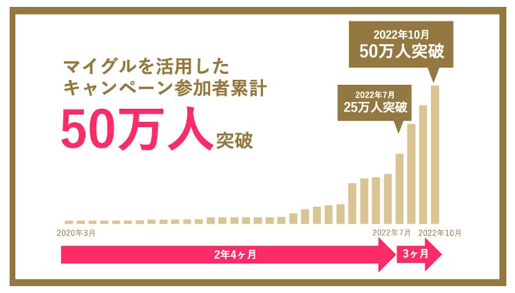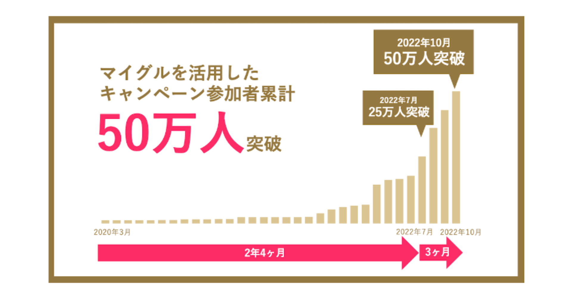 株式会社ギックス(本社:東京都港区、代表取締役:網野知博、以下:当社)は、個客選択型スタンプラリー「マイグル」を活用したスタンプラリーキャンペーンの累計参加者が、2022年10月末時点で50万人を突破したことをお知らせいたします。