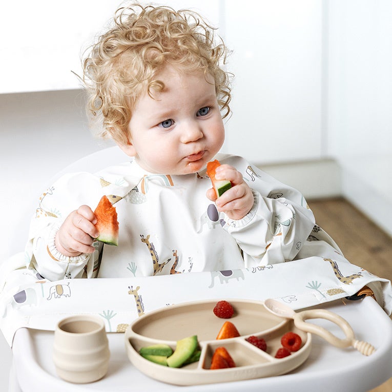 「BiBADO」は、赤ちゃんの自発的な「手づかみ食べ」や「BLW(ベビーリードウィーニング)」をサポートする設計が特徴。食育においても大切とされる「自分で食べる」という学びの時間を応援します。忙しい毎日を過ごす保護者にとっても、お食事後の片付けが簡単になることで、日々の負担を減らす頼れる存在です。