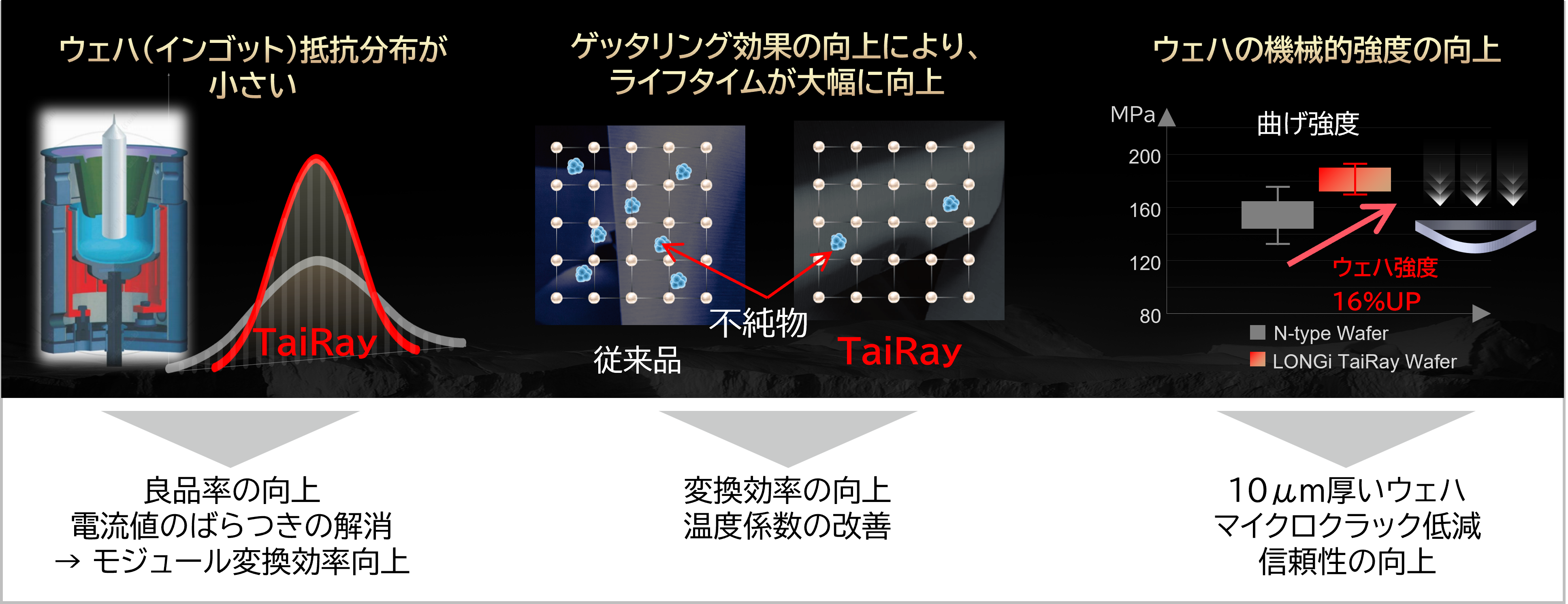 サイズ拡大を除き、ウェハ業界では10年ぶりの製造技術革新によるTaiRayウェハを採用しています。