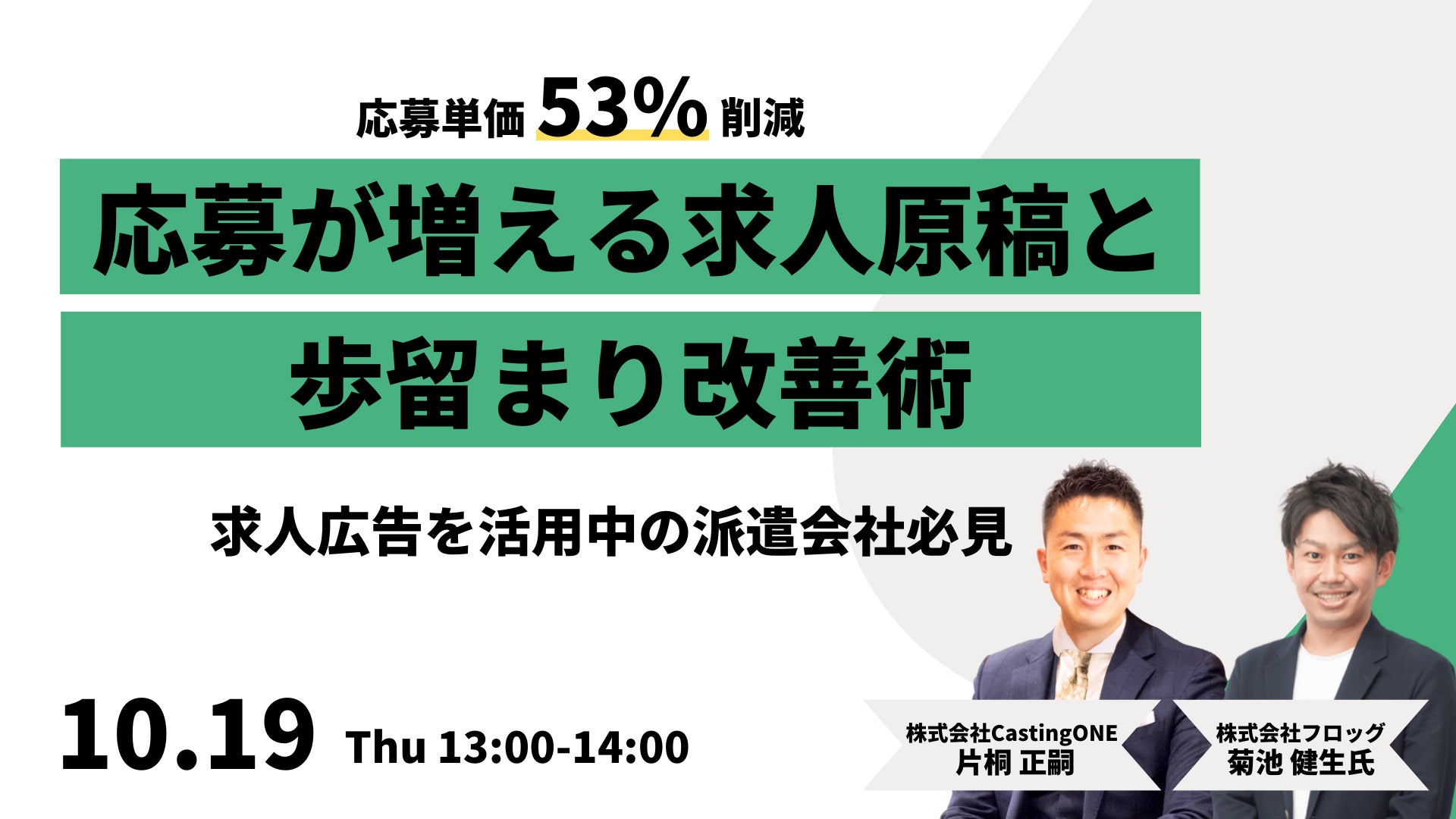 【10/19開催】応募単価53%削減!応募が増える求人原稿と歩留まり改善術とは