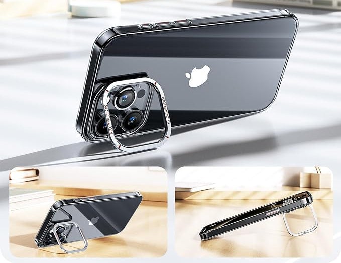 普段はカメラレンズのプロテクターとして収納され、開けるとスマホスタンドになります。スタンドは90度の角度まで調節可能で使いやすい。しかもスタンドはアルミニウム合金製で、ハードでありながら重さはほぼ感じられません。