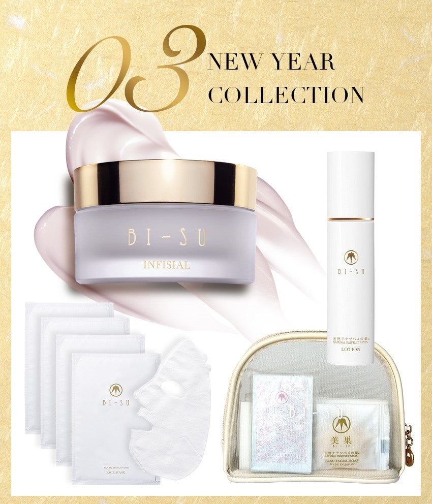 BI-SU最高峰クリーム「インフィシアルクリーム」をメインにローションとフェイスマスク、おでかけに便利なトラベルセットをあわせた、この時期だけの至高のセット。