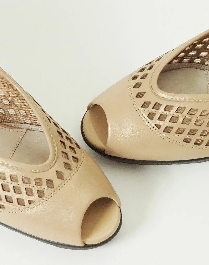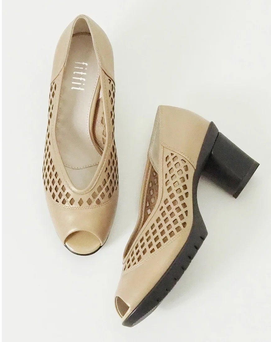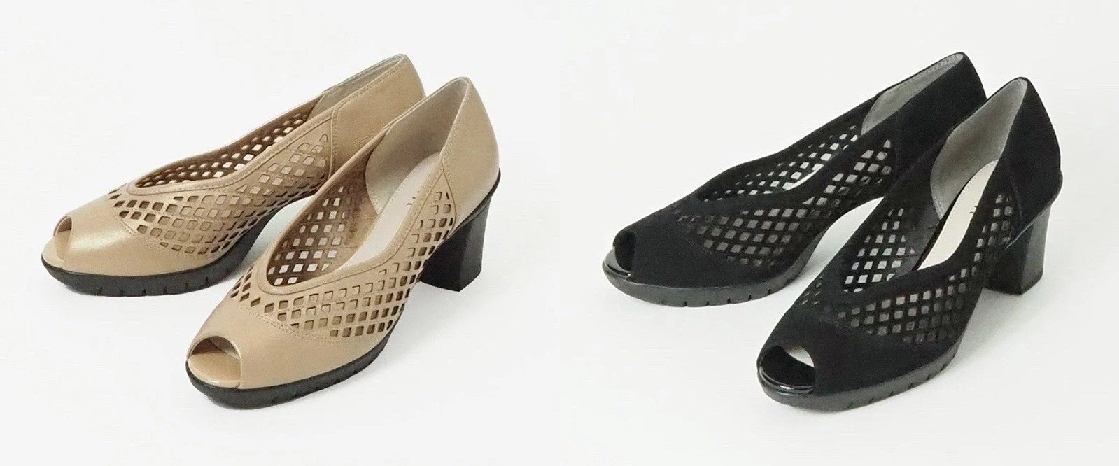 7cmヒールでも快適な履き心地を実現した人気シリーズから、透け感のあるカットワークデザインを取り入れたオープントウパンプスを新発売