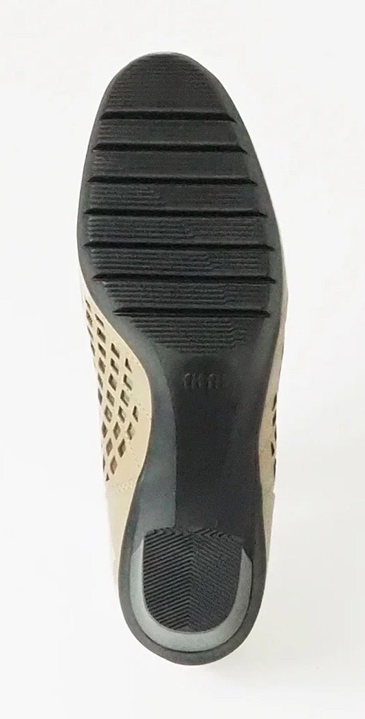 2. アウトソールにはEVA素材を採用。軽さと耐久性を両立させ、前方にスリットを入れることで歩きやすく、長時間の歩行にも対応できるようにしています。また、ソール中央につけたくびれには、靴と足を華奢に見せる視覚効果があります。