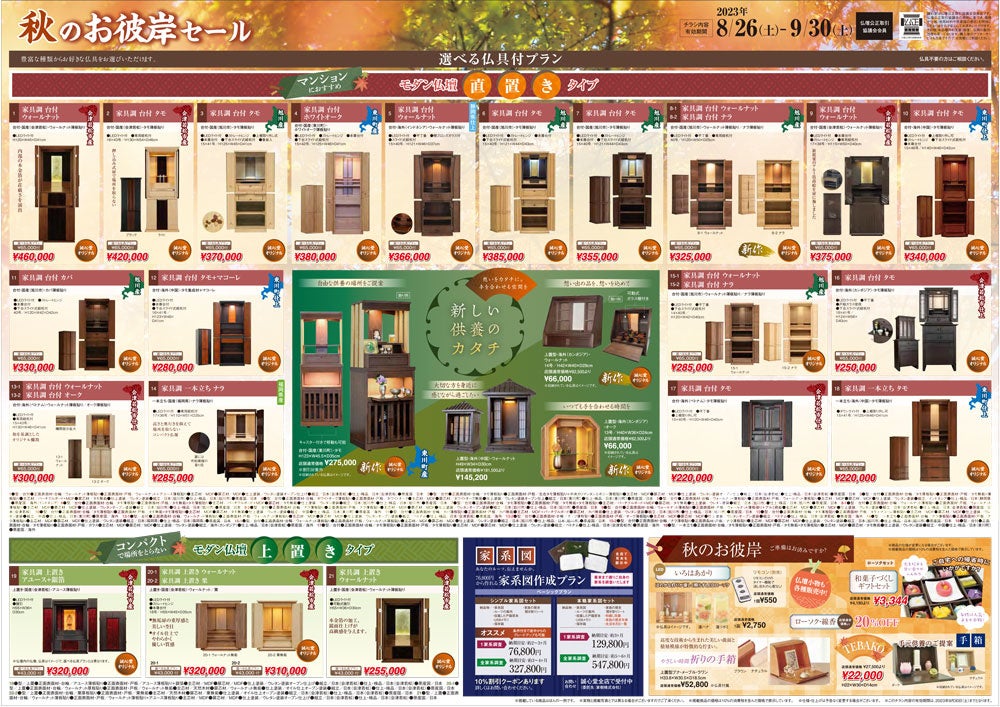 手元供養・家具調仏壇・伝統仏壇の特別価格も!秋のお彼岸セールを開催
