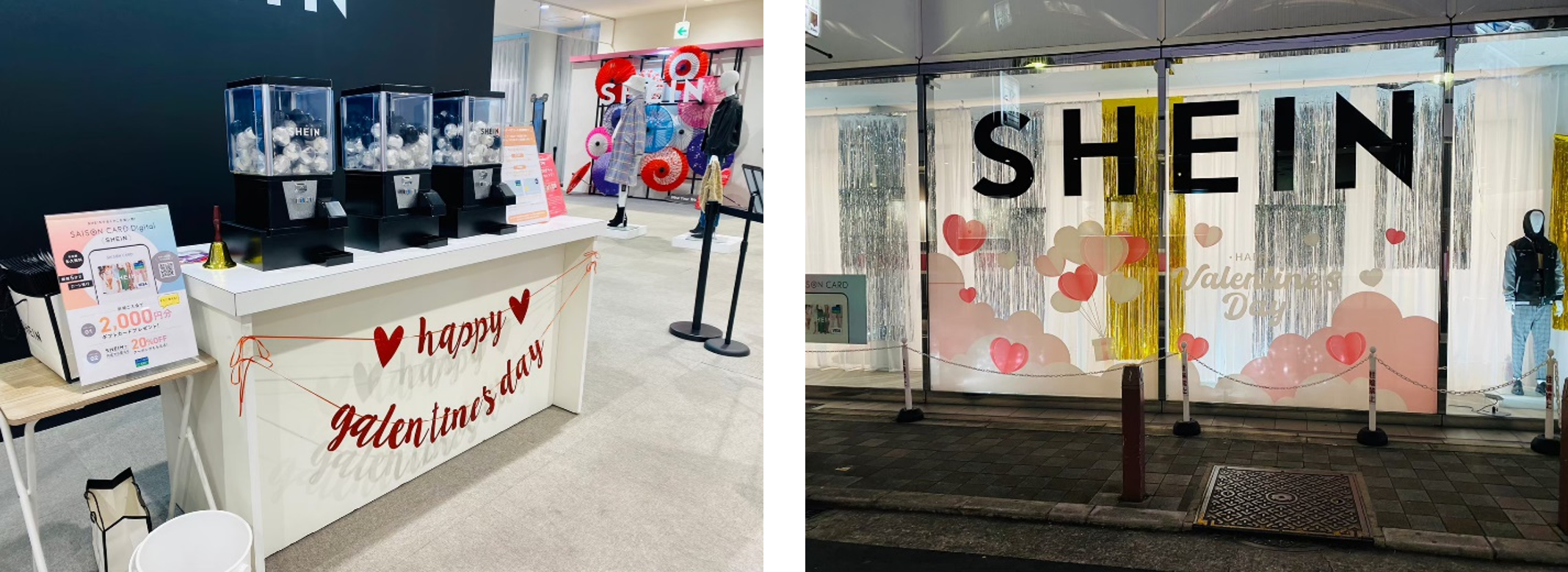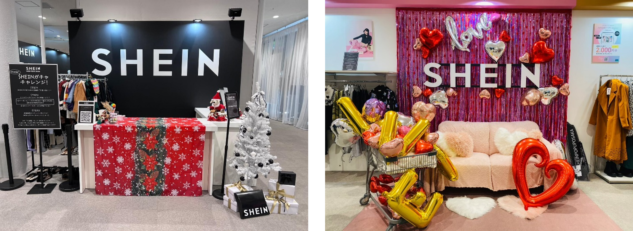 「SHEIN POPUP OSAKA」では、一度ご来場いただいた方にもお楽しみいただけるように、季節に合わせてアップデートを繰り返してまいりました。クリスマスシーズンには『SHEIN POPUP OSAKA XMAS 2022』とし、SHEINの冬のトレンドアイテムを約700点入れ替え、ご来場いただいた方へのクリスマスギフトとして、最大一万円のギフトカードやアパレル引換券が当たる3種のクリスマス限定SHEINガチャをご用意。フォトスポットや店内装飾もクリスマス仕様にアップデートいたしました。バレンタインの時期には、限定スペシャルガチャの実施や店内をロマンティックなバレンタイン仕様にリニューアル。さらに、SHEINアイテムにて春ファッションを楽しんでいただけるよう、会場展示商品を約200点入れ替え、バレンタインデート、春のオフィスカジュアル、春のメンズデニムアレンジなどのテーマに合わせたトレンドコーディネートにリニューアルいたしました。その他にも、新年リニューアルや、企業とのコラボレーションやキャンペーンを行うなど、常に新しいファッションの楽しみ方を提案してまいりました。