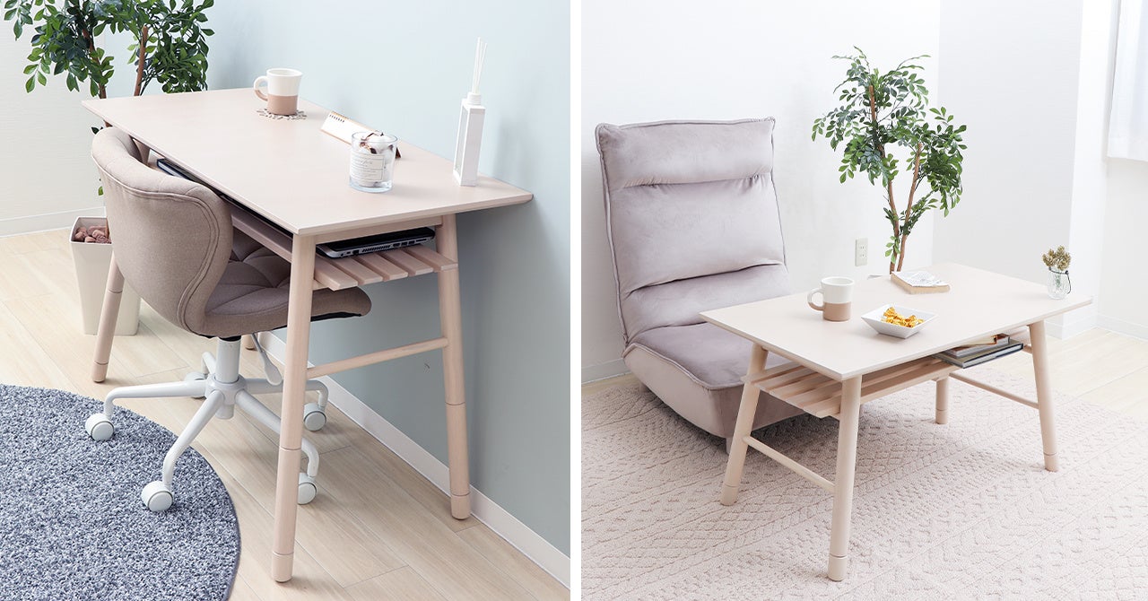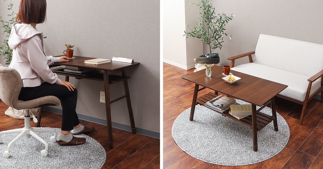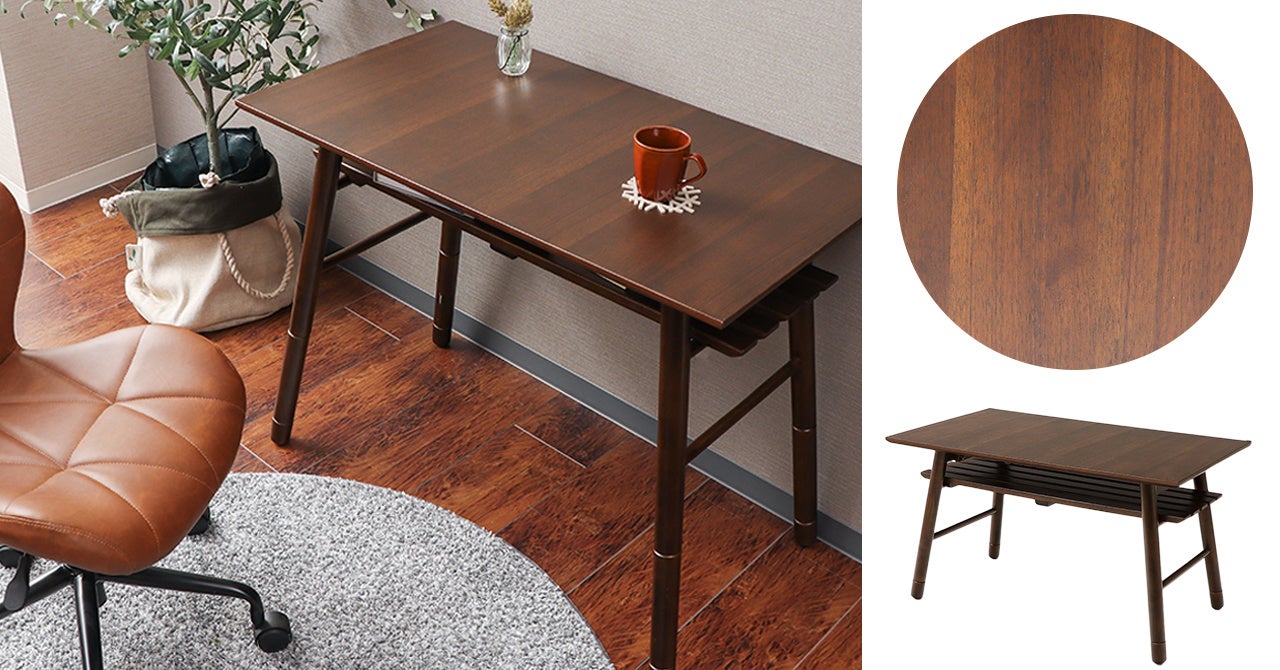 「ヤマソロ」デスクにもテーブルにも。2WAY折れ脚テーブル(しかも棚付)を発売