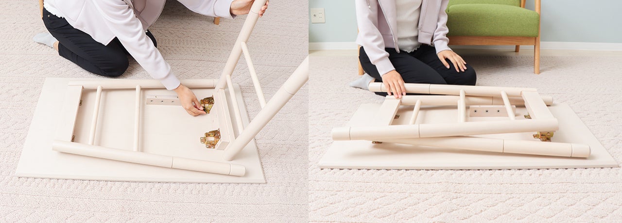 H70cmのデスクご使用時でも「新構造」により脚同志が干渉せず、きれいに折りたためます。