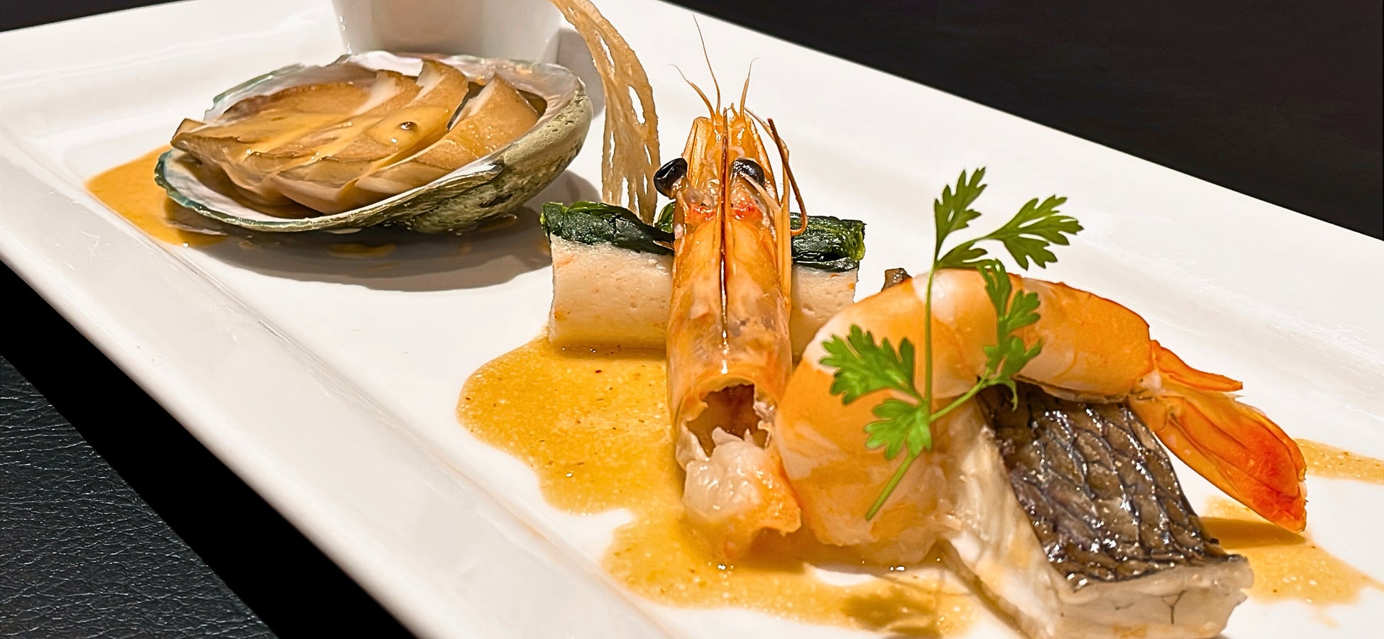 お好みに合わせて「鮑の白ワイン蒸し」または「オマール海老のポワレ」をお選びいただけます。