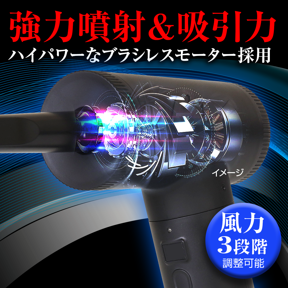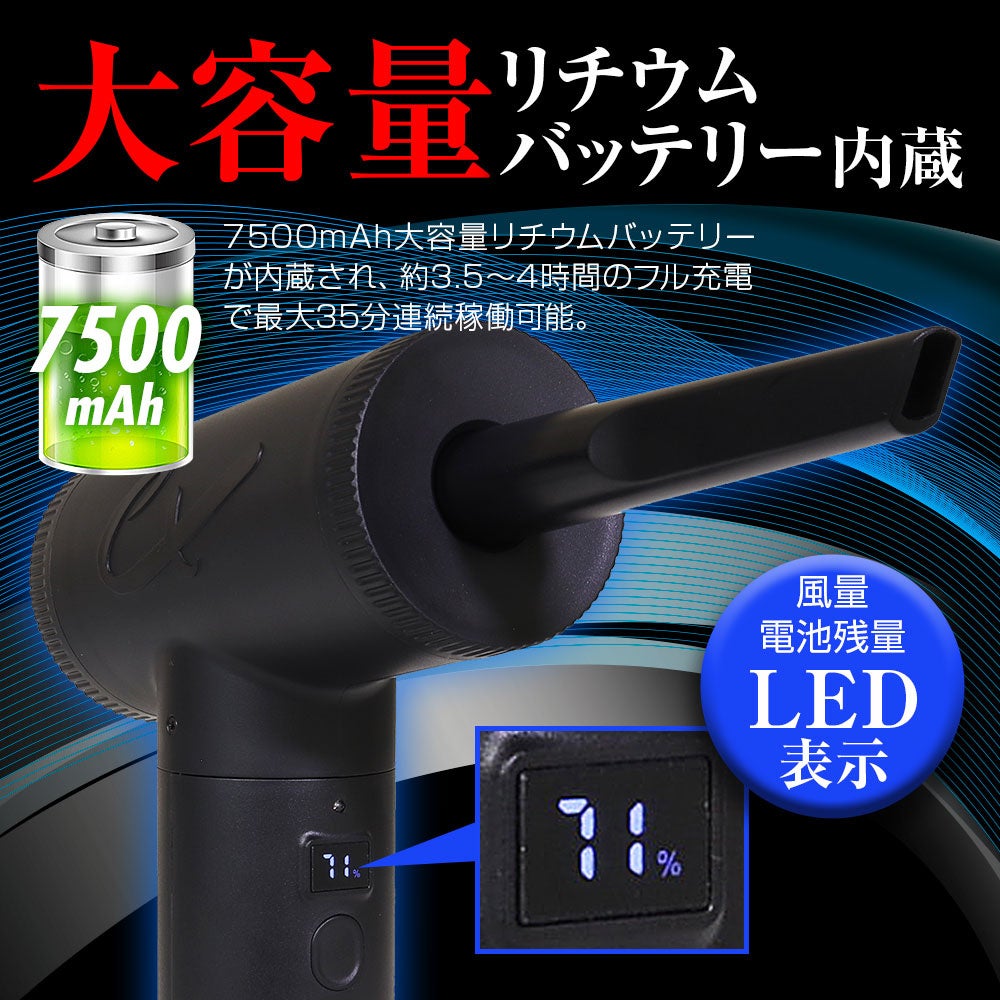 - 大容量リチウムバッテリー&電池残量・風量表記ディスプレイ