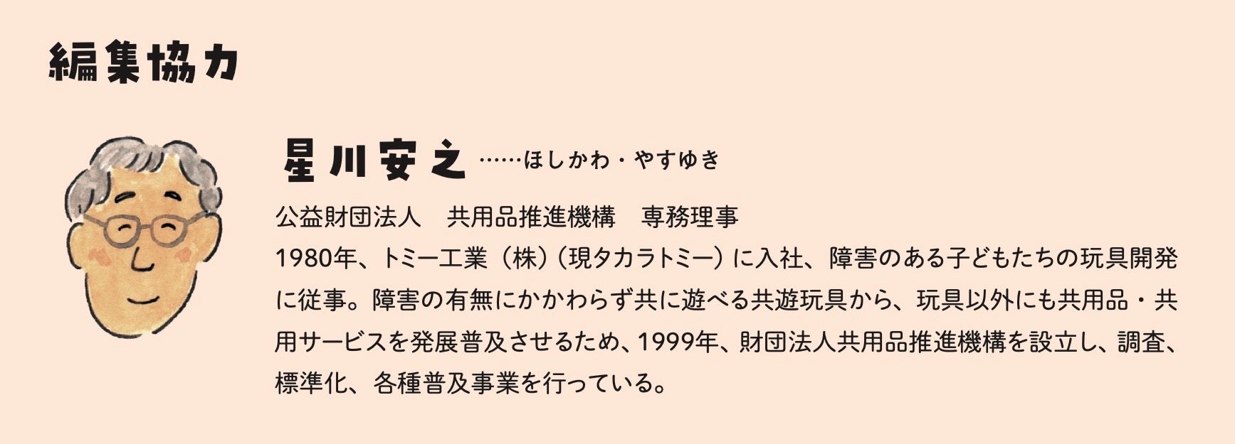1980年、トミー工業(株)(現タカラトミー)に入社、障害のある子どもたちの玩具開発に従事。障害の有無にかかわらず共に遊べる共遊玩具から、玩具以外にも共用品・共用サービスを発展普及させるため、1999年、財団法人共用品推進機構を設立し、調査、標準化、各種普及事業を行っている。