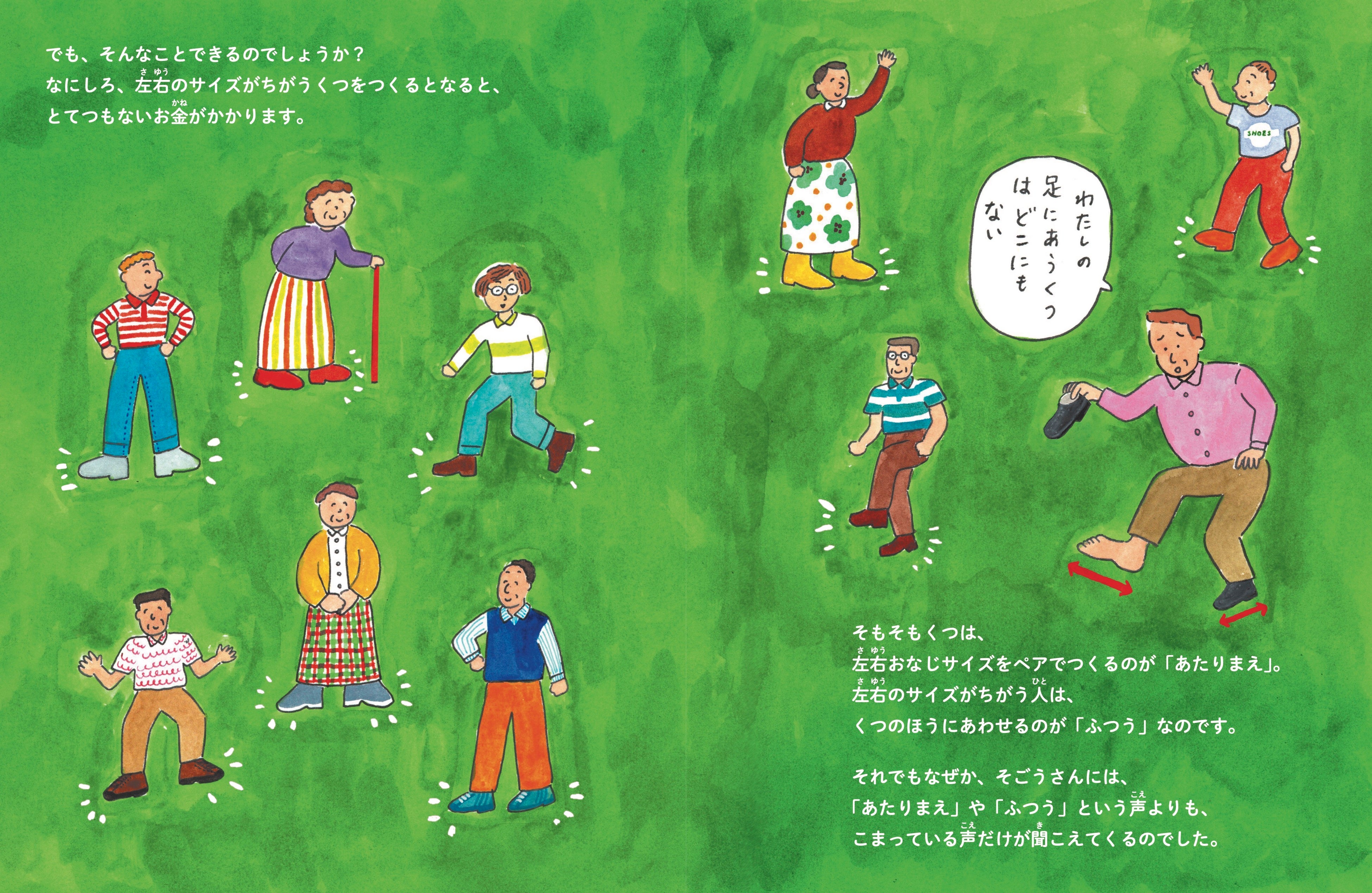だれひとり困らないくつをつくっている、元てぶくろ屋さんのお話。実話からできた、子どもと一緒に「共生社会」を身近に考える絵本。