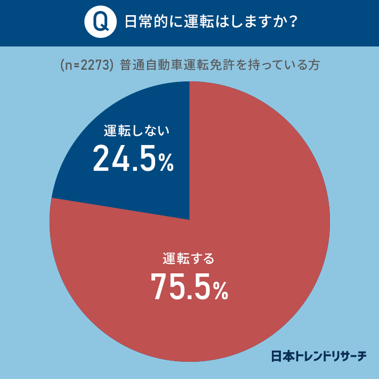 普通自動車運転免許を持っている方に日常的に運転をするか聞きました。