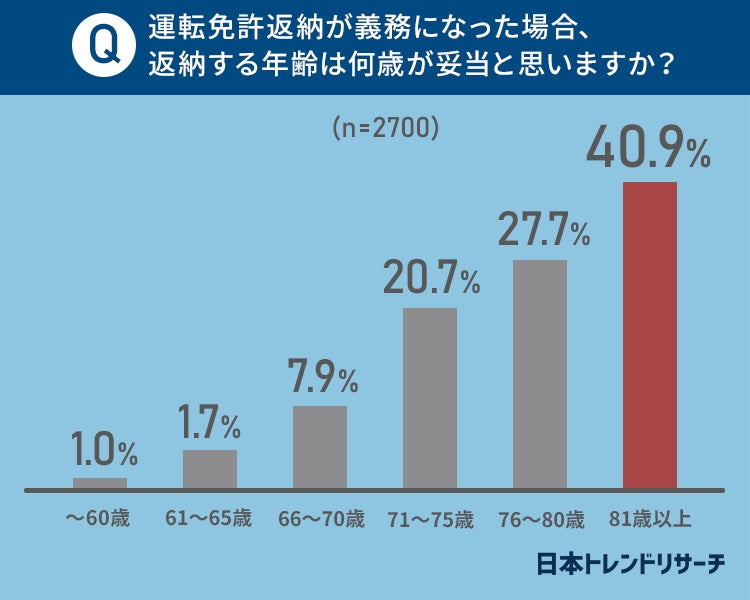 ■免許返納の義務化 適正年齢は「81歳以上だと思う」が40.9%