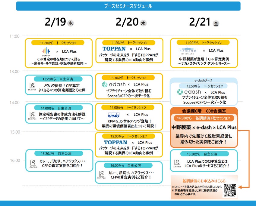 登壇を予定しています。また、LCA Plusにて実際に算定を行ったカレーや爪切り、ヘアワックスなどの実例を交えながら、CFP算定の進め方についても自主公演にて解説します。