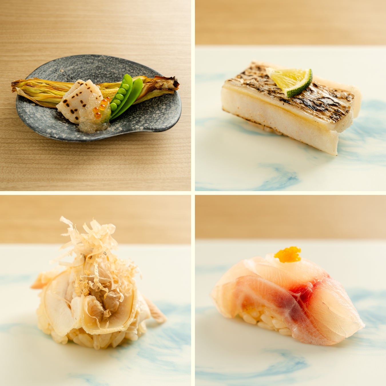 この度、「初夏のおまかせコース」9,570円(税込、以下同)を5月12日(月)より提供しています。初夏にかけて旬を迎える魚介を中心に、この時期に最も美味しい状態のネタを選び抜き、それぞれに最適な“仕事”を施すことで、素材の魅力を最大限に引き出しています。人気の定番メニューはそのままに、要所要所で旬の食材を織り交ぜることで、“安心感”と“新鮮な驚き”の両方を楽しんでいただける構成のコースです。