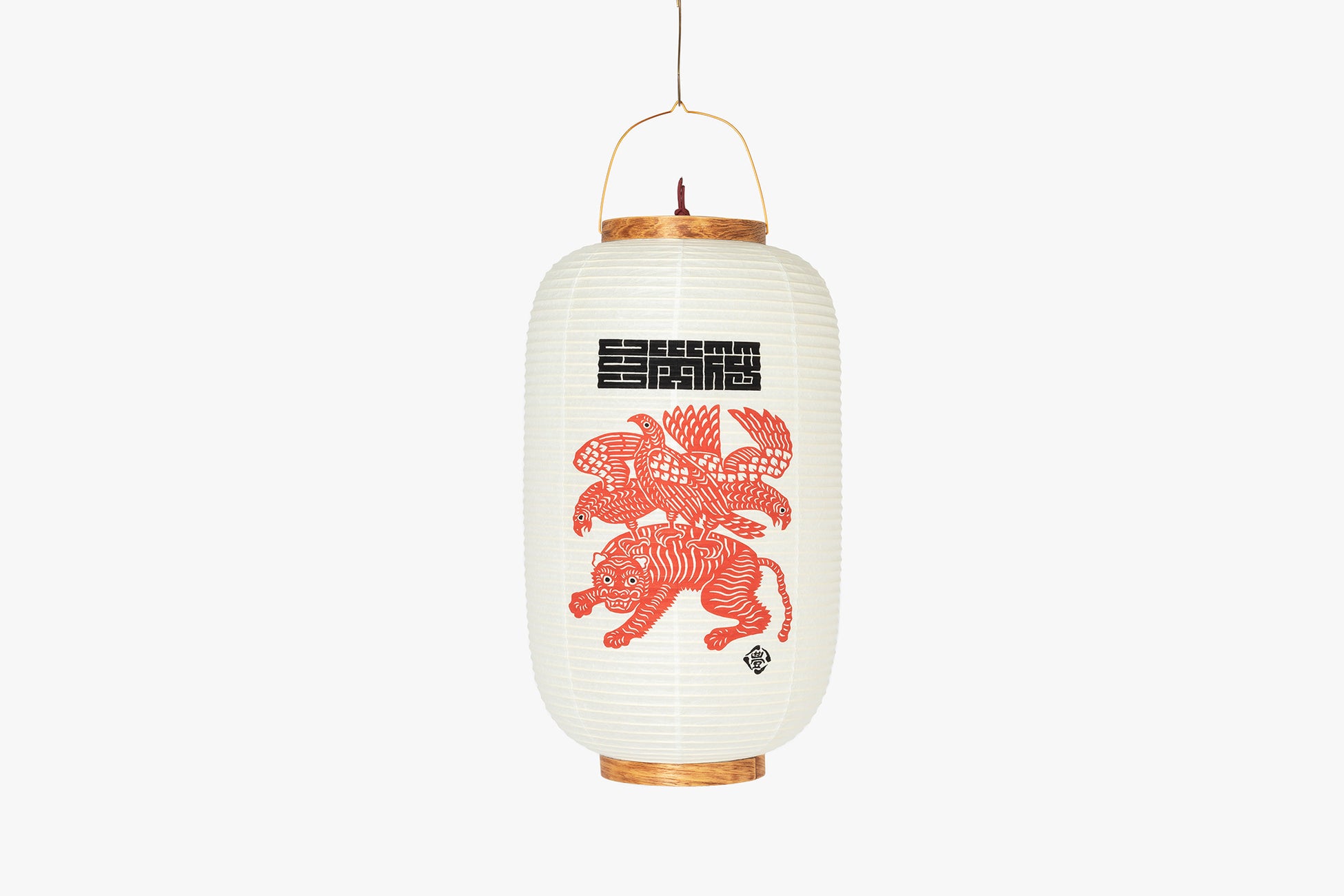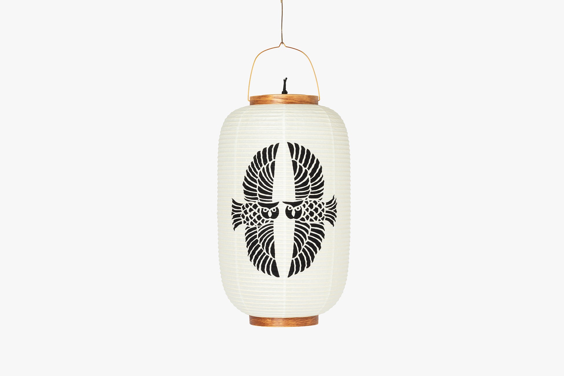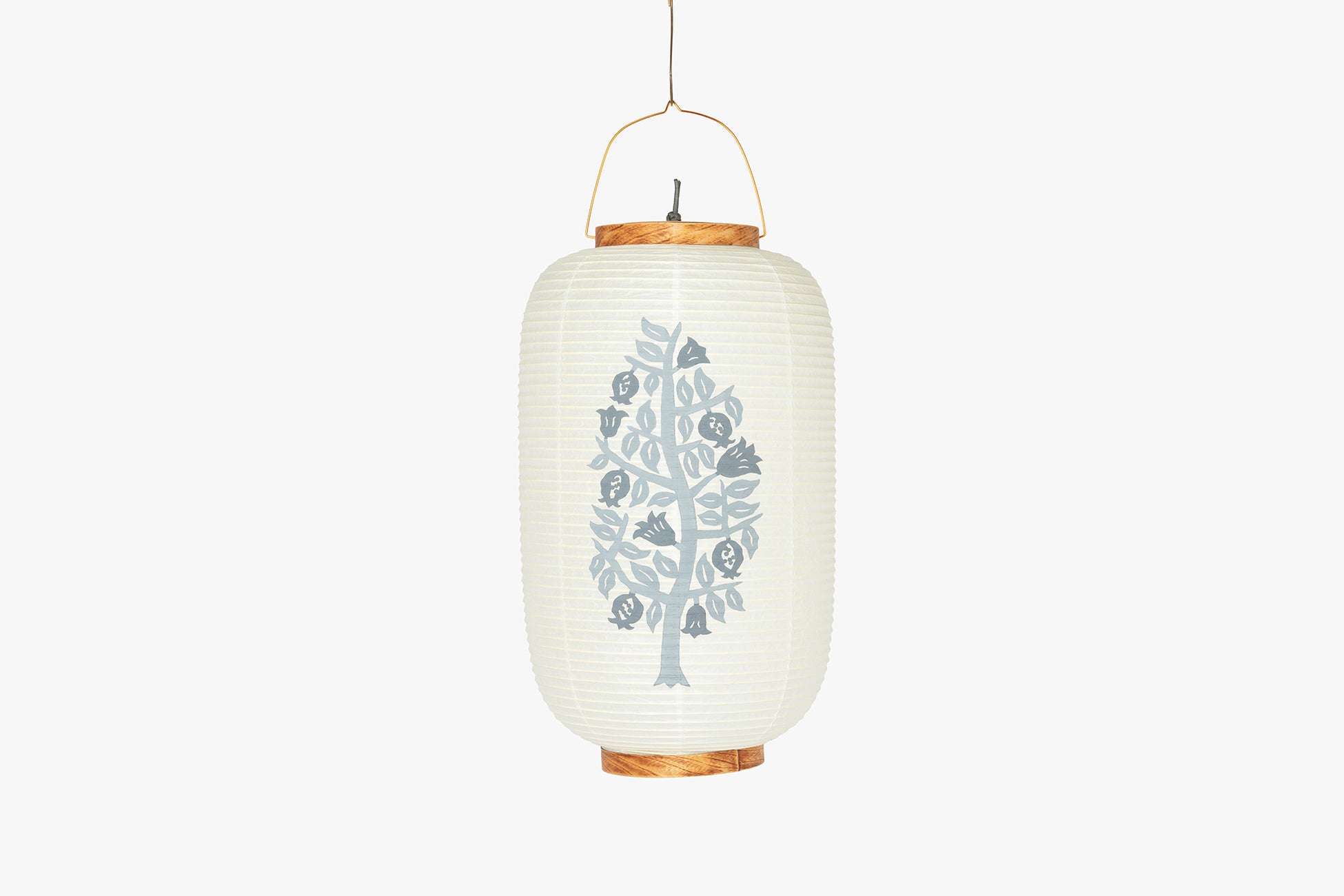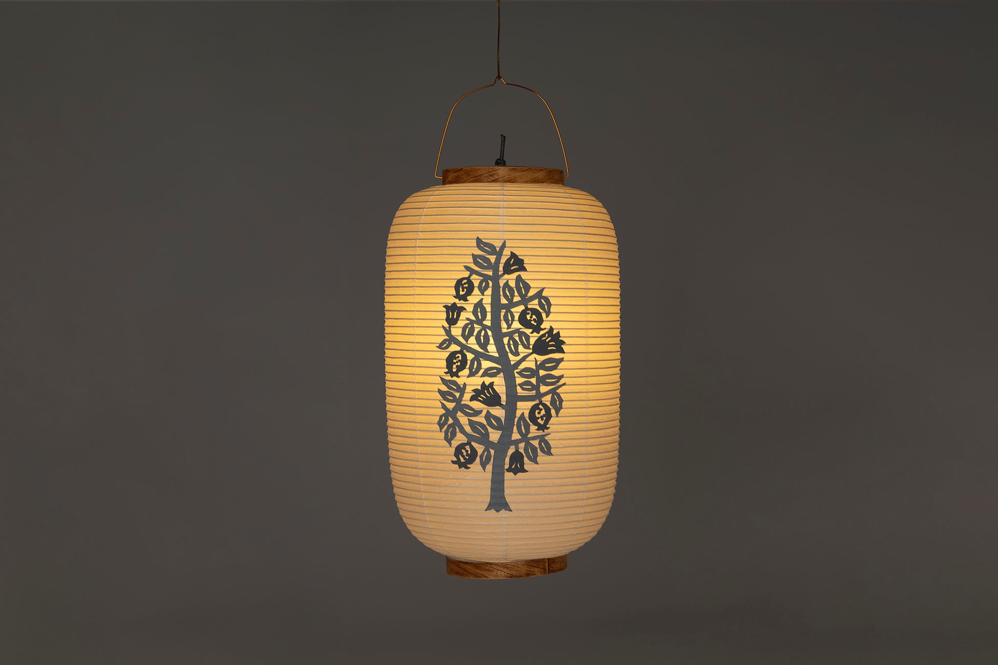 手描き職人のよつめデザインによる絵柄は、山をテーマにした柄を提灯の柄に選んだもの。柔らかな和紙越しの光を感じる八女提灯。シラキ工芸制作。